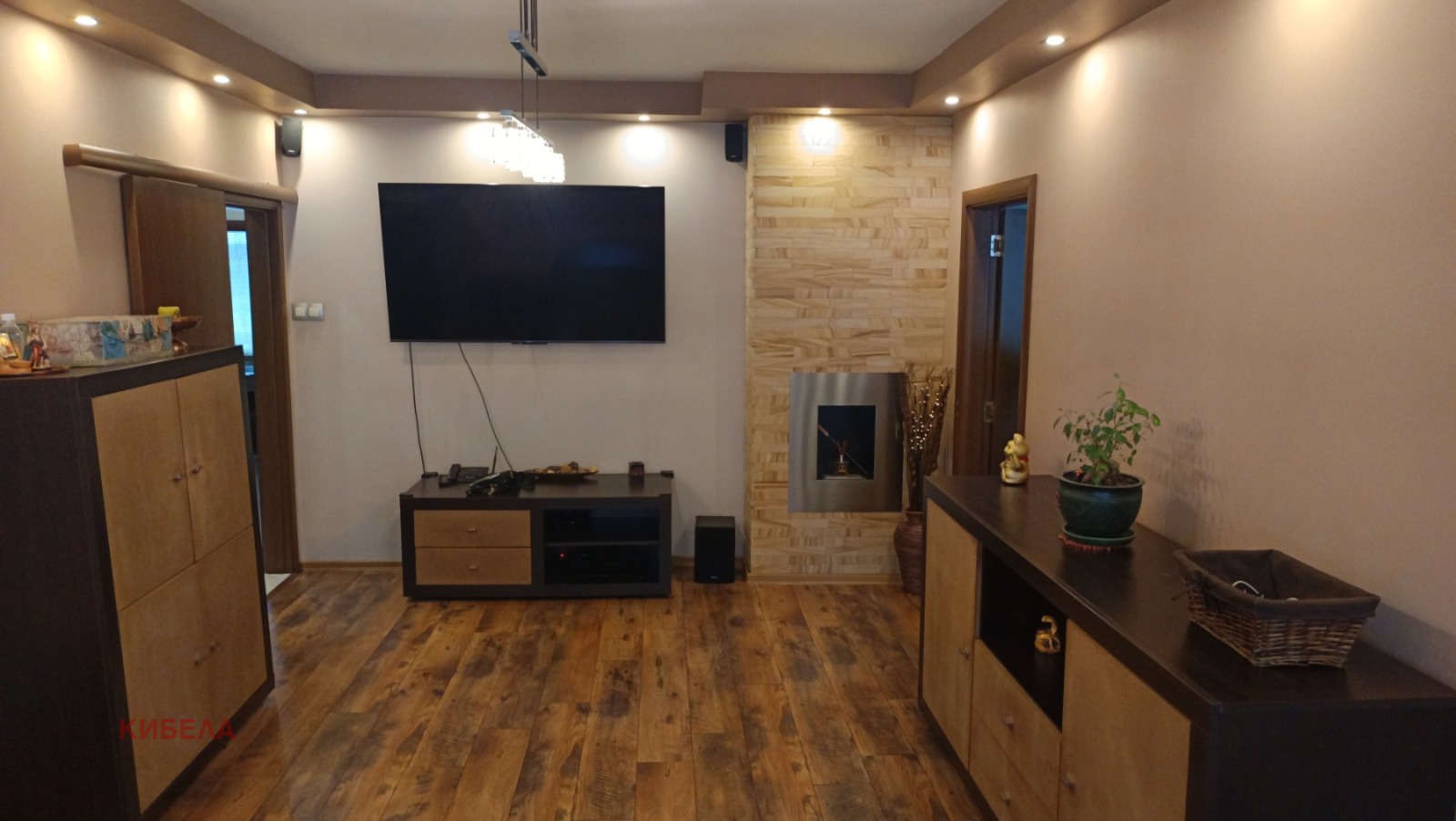 ПЕРФЕКТЕН АПАРТАМЕНТ,НАПЪЛНО ОБЗАВЕДЕН,ИЗРЯДНИ ДОКУМЕНТИ,ГОТОВ ЗА НАНАСЯНЕ.Агенция Кибела Ви предлага ексклузивно рядко срещано пазар предложение за покупка на напълно завършен и обзаведен апартамент в отлично поддържан вход.Апартаментът е саниран,с изцяло подменена дограма и се продава напълно обзаведен.Състои се от антре с обособена ниша за съхранение на обувки,просторен хол с камина,от който се влиза в родителска спалня/от двете помещения се излиза на просторен балкон/,кухня с остъклен балкон,баня с тоалетна и самостоятелна тоалетна.Жилището е в отлично състояние.Покривът е ремонтиран,общите части са отлично поддържани.Към апартаментът има мазе с площ 5 кв.м.