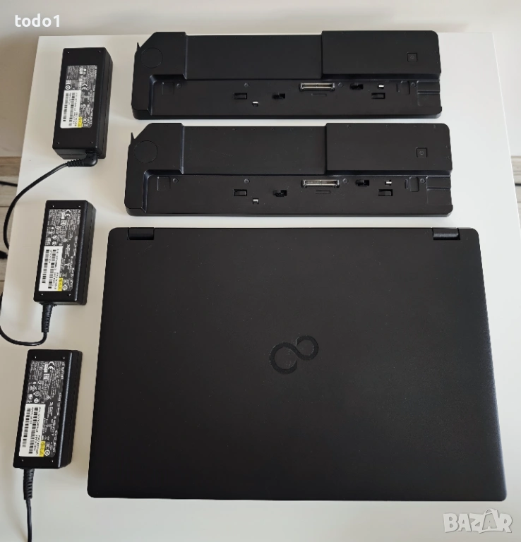 В комплект с две докинг-станции и 3 зарядни, всичките оригинални на Fujitsu