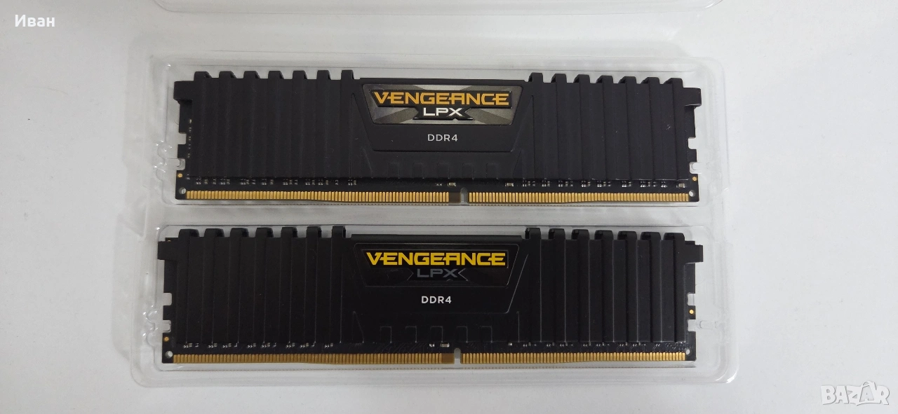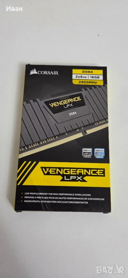 Продавам две плочки рам помети на Corsair Vengeance LPX DDR4 2x8GB ( 16GB ) 2400mhz. Работят без никакви проблеми.