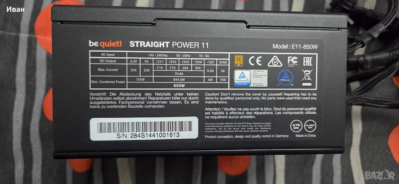 Захранването работи без абсолютно никакви проблеми. Почистено е от прах и готово за новия си собственик.
