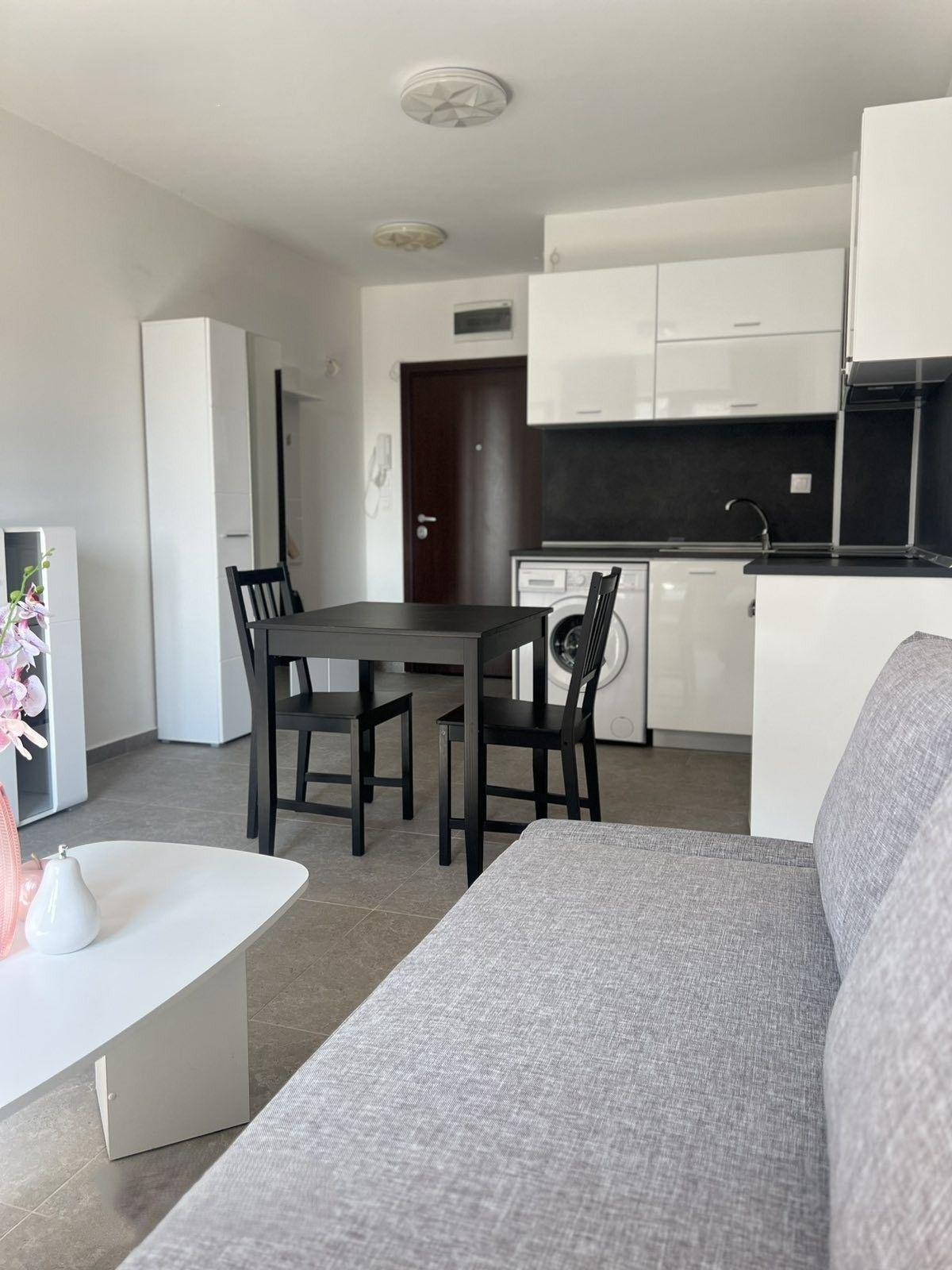 Месечният наем е 550 EUR. Предложението комбинира функционално пространство и лесен достъп до градския транспорт, тъй като е близо до спирки.