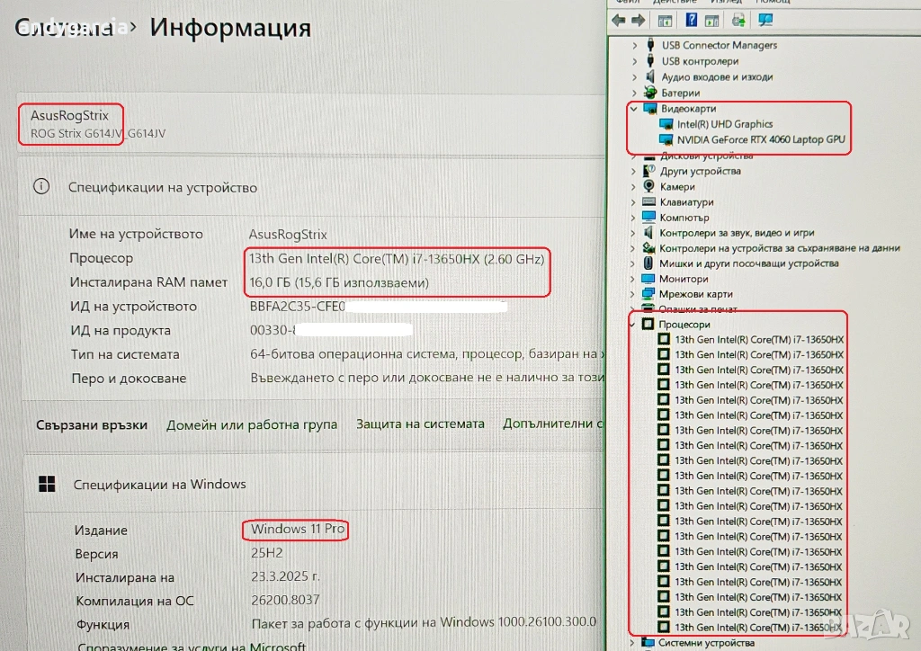 Продавам геймърски лаптоп ASUS ROG Strix G16 G614JV - 16 инча.