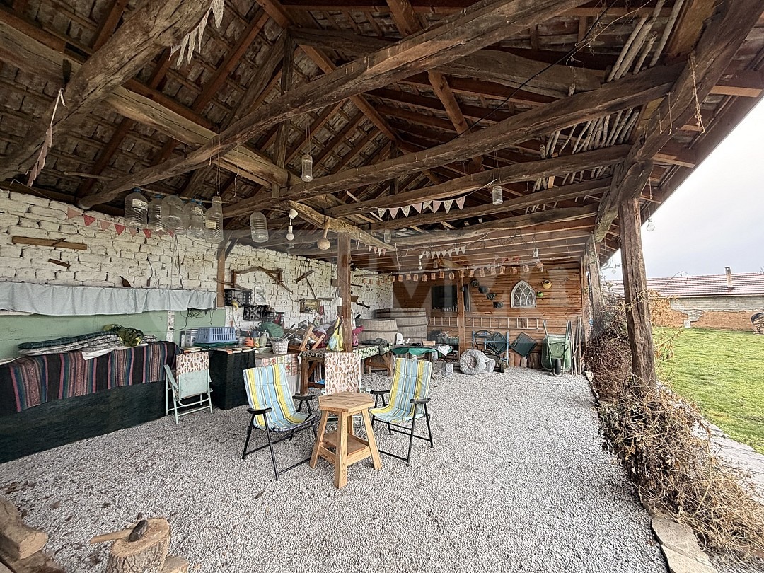 Дворът е просторен и предлага възможности за градина, стопанство или развитие на туристическа дейност.