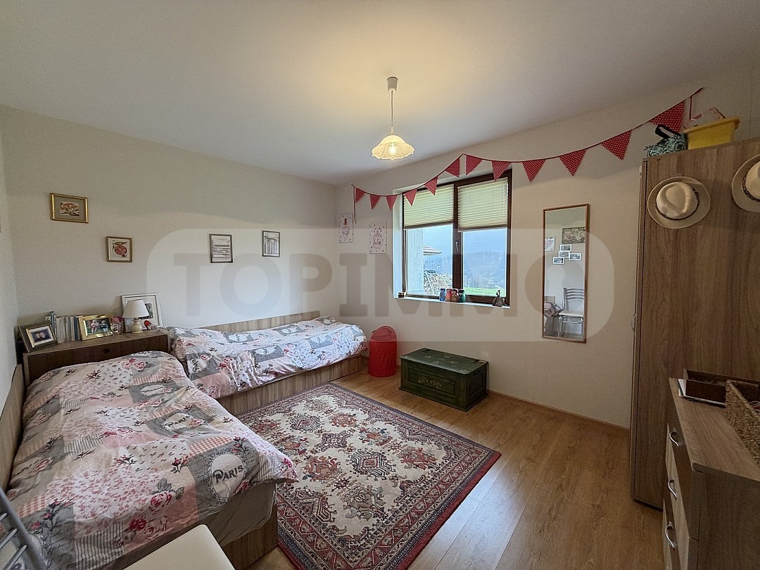 Имотът включва общо 5 спални, 2 бани и 2 тоалетни, както и оборудван сутерен за събирания.