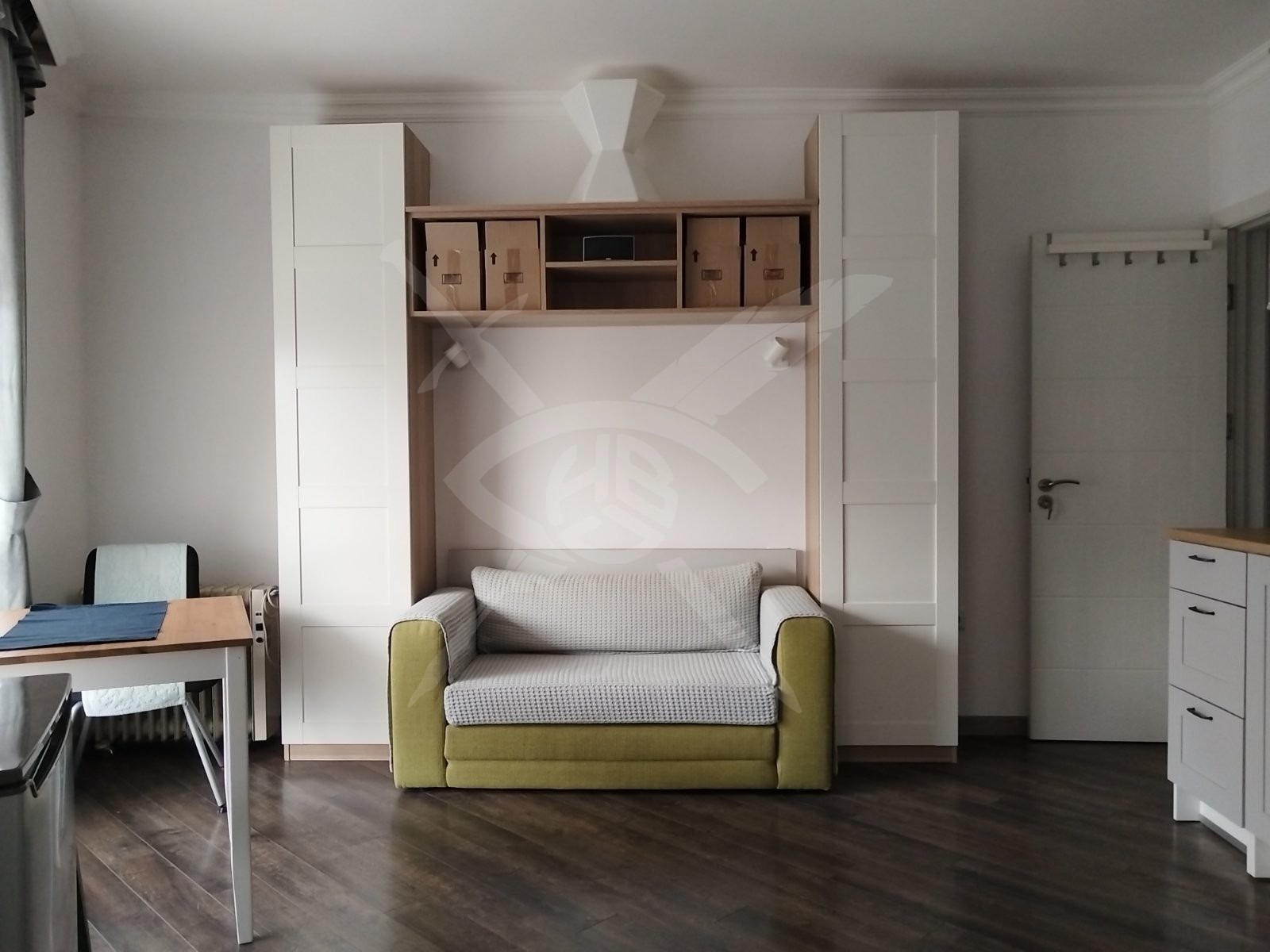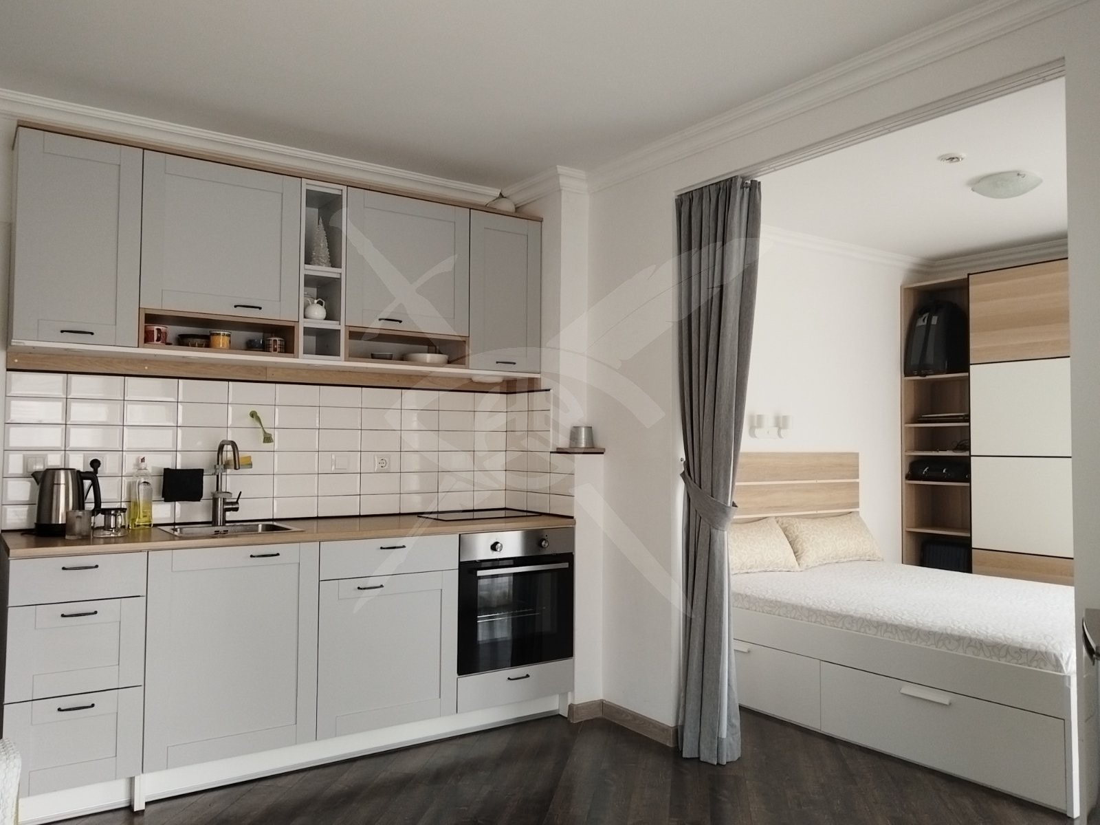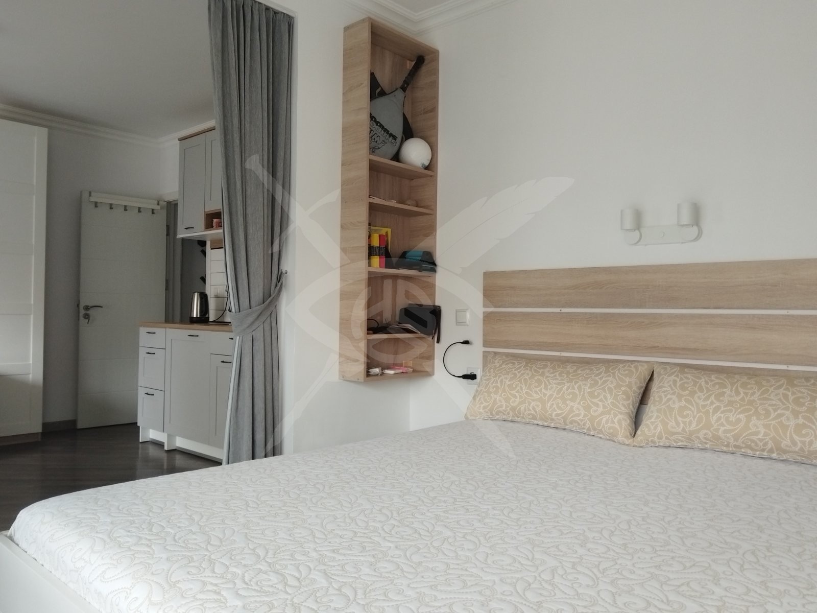 РАЗПРЕДЕЛЕНИЕ: Предлагаме за наем едностаен апартамент с обща площ 35 кв.м. функционално разпределени в спалня с кухня, баня с тоалетна и тераса.