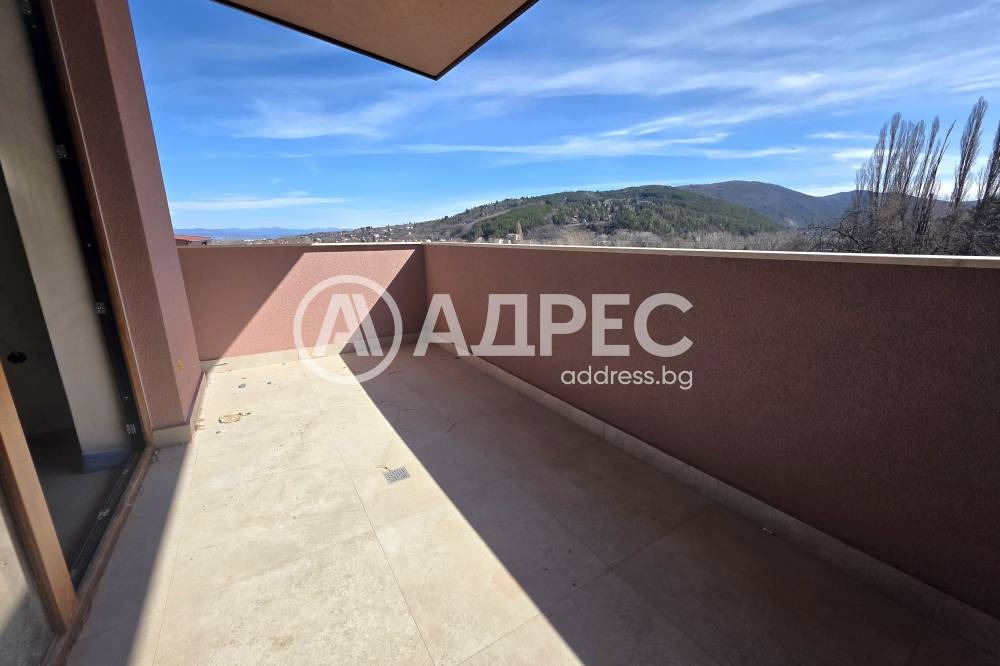 трети етаж: огромна всекидневна с кухненски бокс и излаз на две тераси със зашеметяващи гледки към Панчаревско езеро и природен парк Витоша.Изградено подово отопление. Подземно паркиране за няколко коли, индивидуално само за конкретната къща. Перфектна локация. Централна канализация !!!