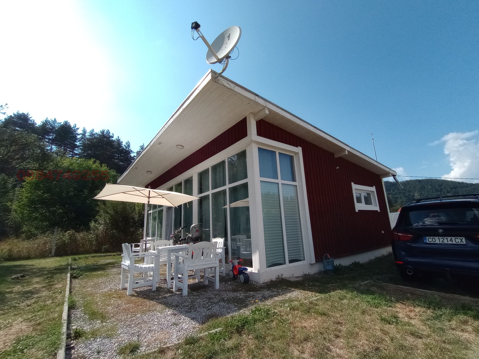 Светлина и панорама: Изцяло остъклена дневна (изток-юг-запад), осигуряваща целодневно слънце и спираща дъха гледка към планината.
