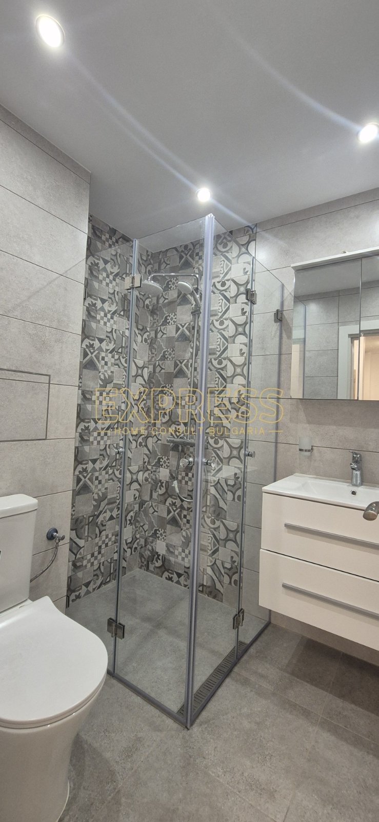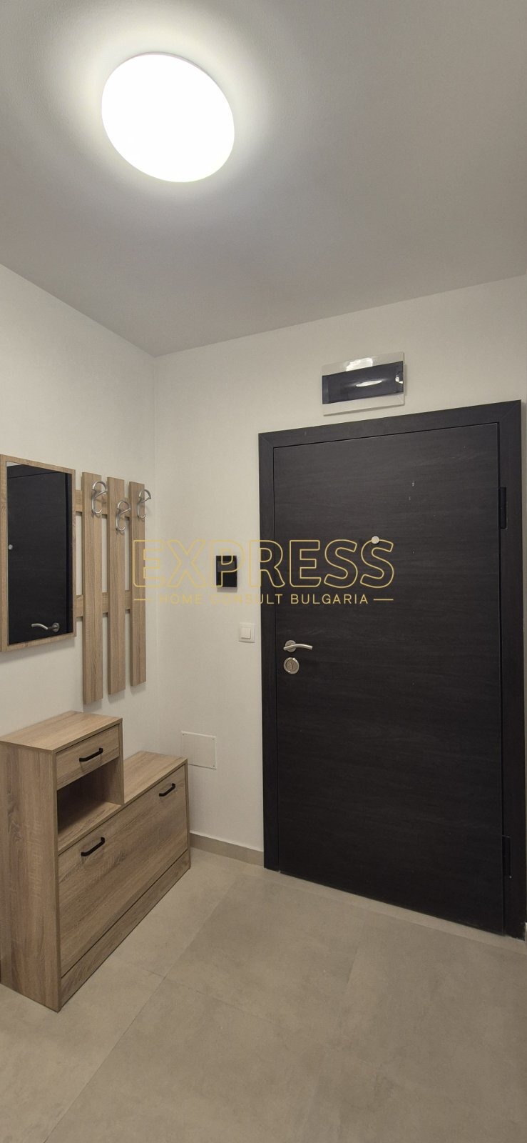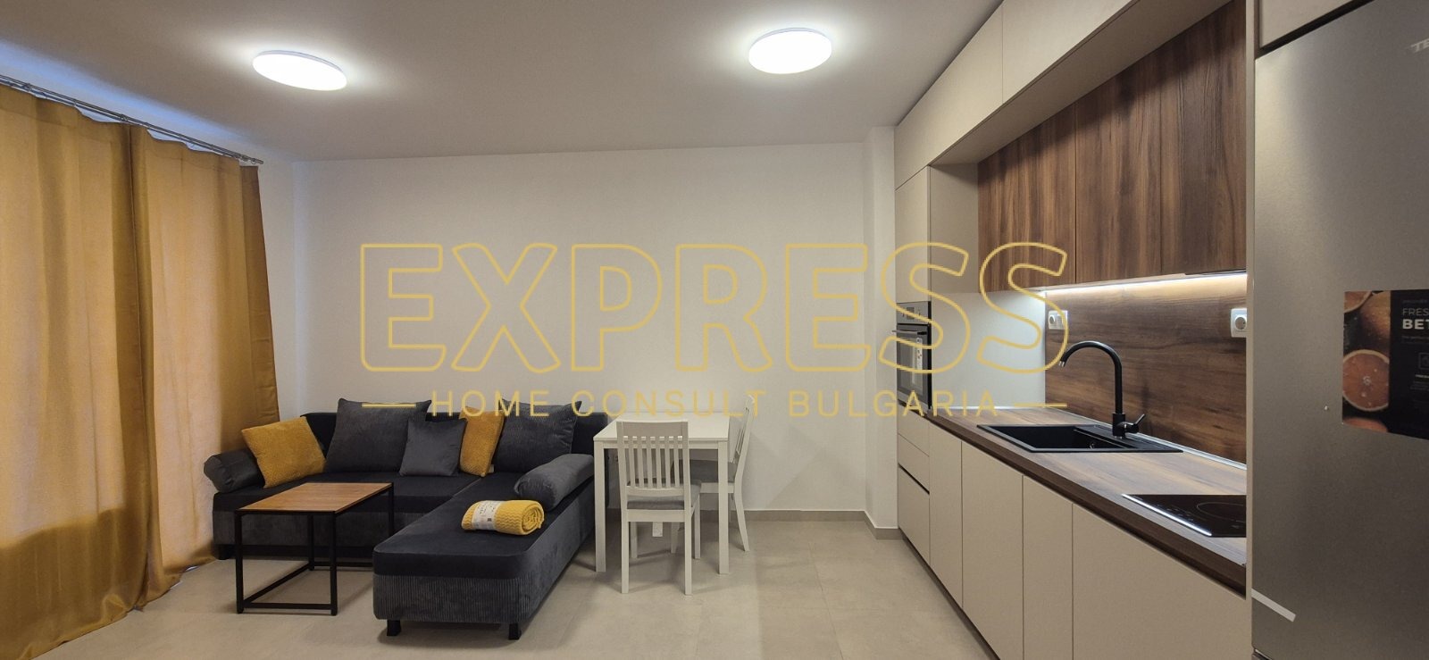 Агенция за недвижими имоти Експрес Дом Консулт България предлага на вашето внимание просторен, слънчев двустаен апартамент в представителна сграда с контрол на достъпа и видео наблюдение в близост до спирки на градския транспорт, магазини, бизнес и административни сгради. Разпределение: входно антре, хол с кухненски бокс и трапезария, спалня, баня с тоалетна. Имотът се отдава под наем напълно обзаведен. Вградена кухня с маркови електроуреди включително съдомиална, баня с душ кабина. Настилки: ламинат, гранитогрес, стени латекс. Апартаментът се намира в нова представителна сграда с отлично поддържани общи части. Възможност за наемане на подземно паркомясто срещу 100 . Предимства : до спирки на градския транспорт, на пешеходно разстояние от метростанция, слънчев, просторен. Ниски консумативни разходи и много други екстри. РАЗПОЛАГАМЕ С ДВА БРОЯ АТЕЛИЕТА В СГРАДАТА, ВСЯКО ПО 38 кв.м. С НАЕМНА ЦЕНА 450 .