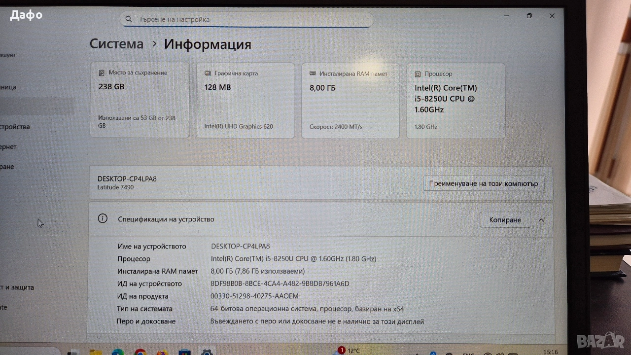 Лаптоп Dell Latitude 7490 Core i5-8250U → Обява 53947472