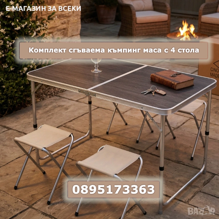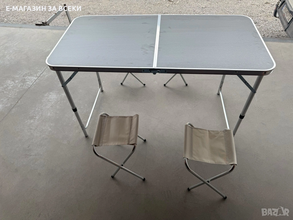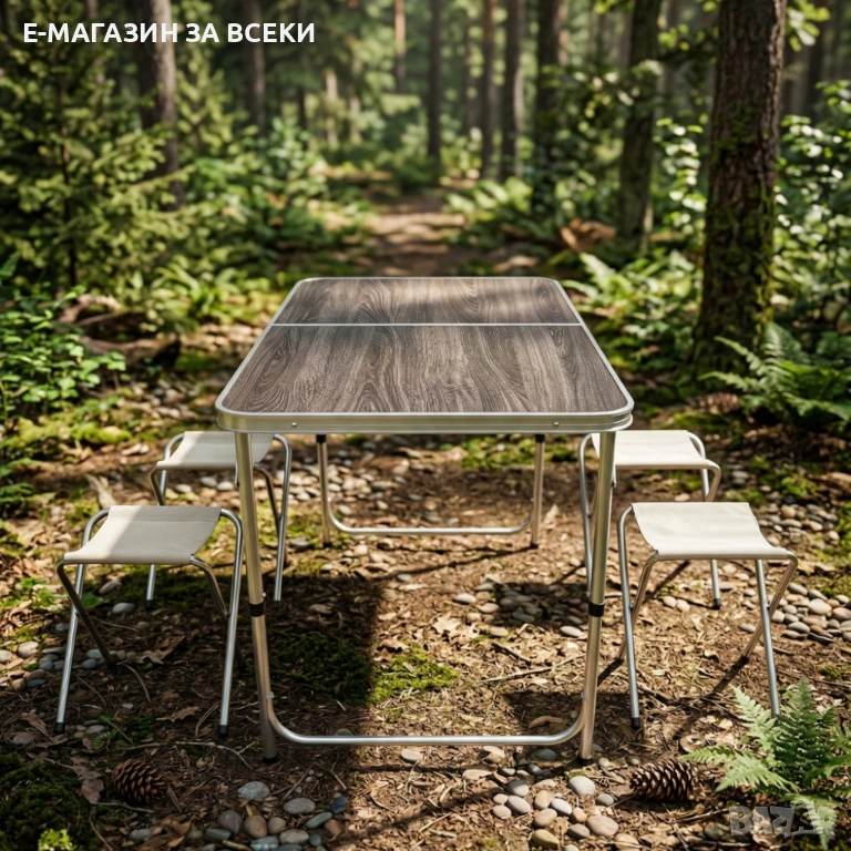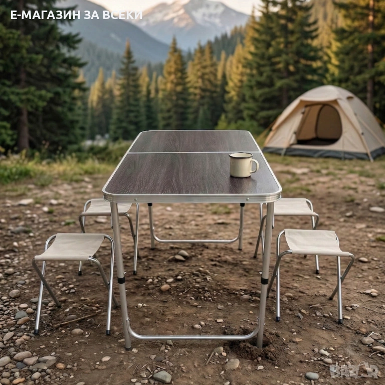 🧳 Комплект сгъваема къмпинг маса с 4 стола – дизайн куфар