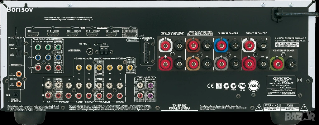 Продавам мощен,голям и качествен ресивър ONKYO TX-SR 607 7,2 .В мн.добро състояние ,технически също е перфектен.Дава се с дистанционно.Много детайлен и качествен звук.Pесивърът потдържа и DTS-HD Master Audio, DTS-HD High Resolution Audio, DTS-HD Express, Dolby TrueHD и Dolby Digital Plus форматите.Внос от Нидерландия.Цена 140 evro, тел. 0988858779 Спецификации
