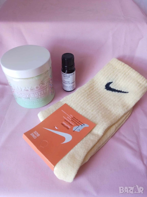 Промо комплект 927-масло за тяло Luzy one,етер.масло лимон и чорапи Nike → Обява 53948068