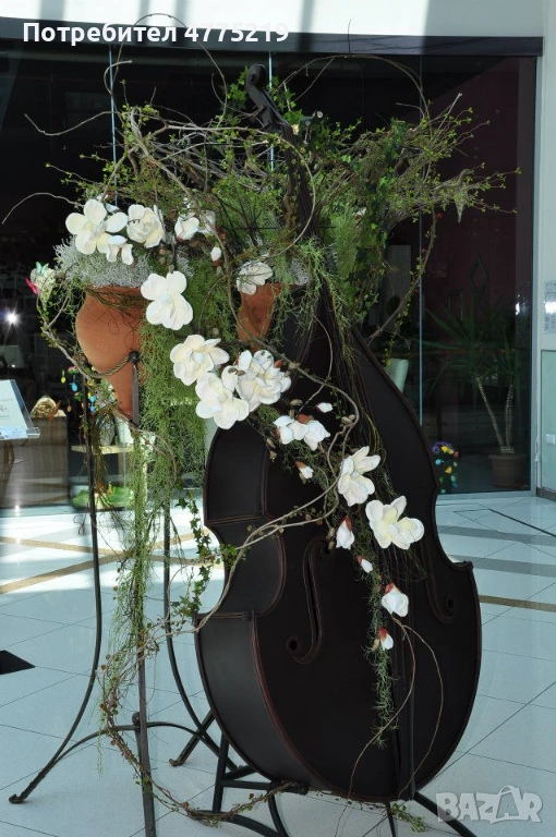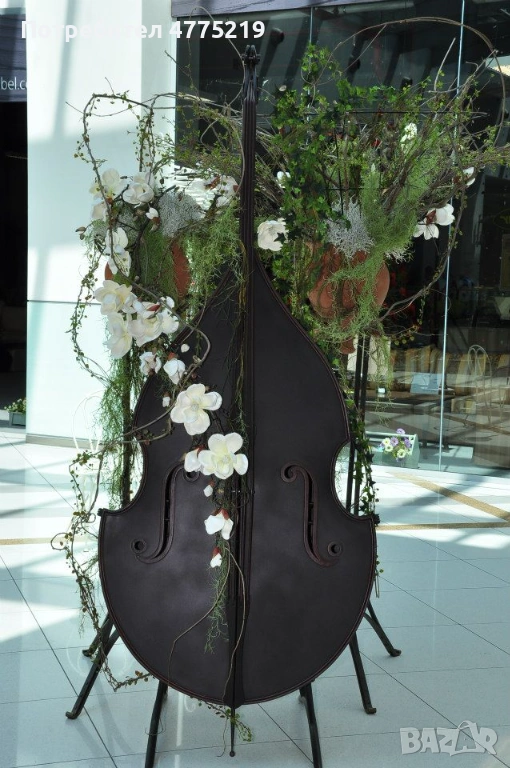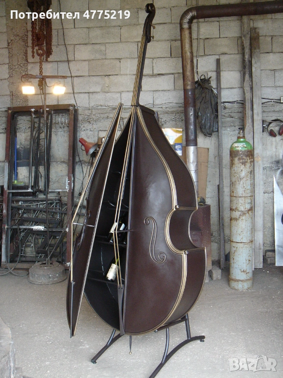 Уникален шкаф за бутилки, изработен като реалистичен контрабас – впечатляващ дизайнерски акцент за интериор, бар или събития.