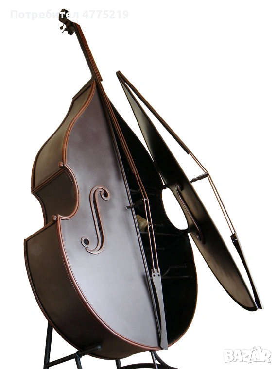 Ръчно изработен от метал, с изключително внимание към детайла – формата, пропорциите и визията са максимално близки до истински контрабас.