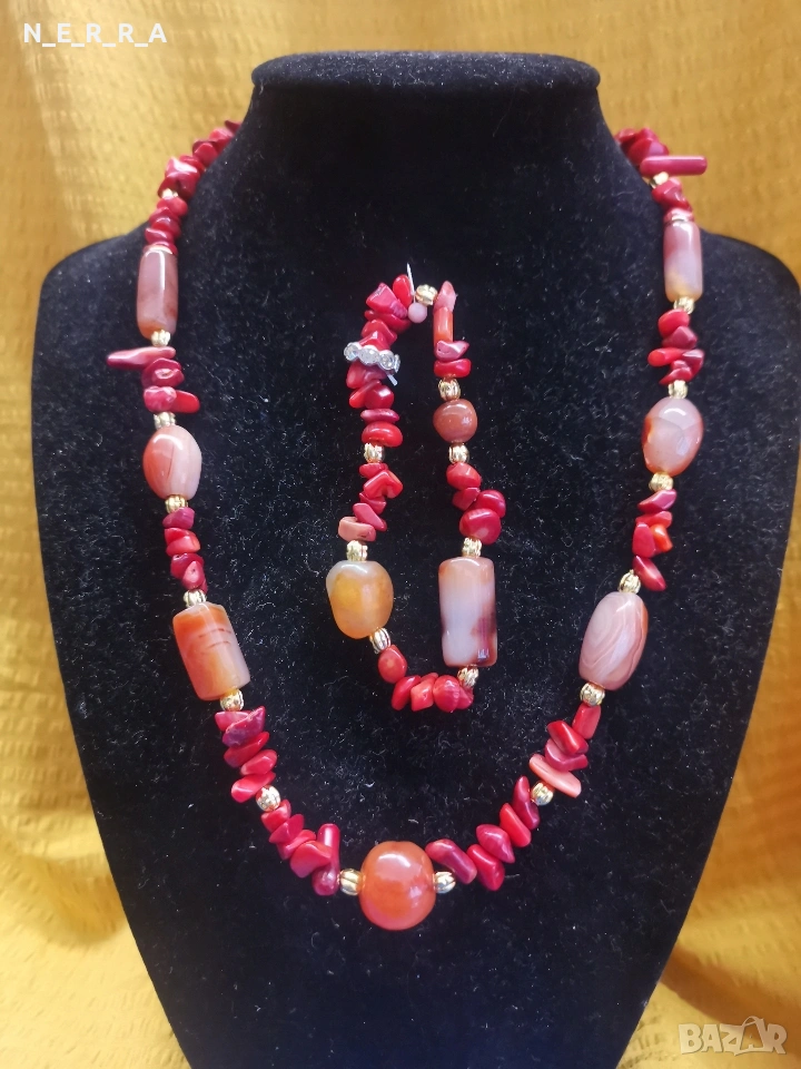 Комплект от корал и карнеол → Обява 53948346