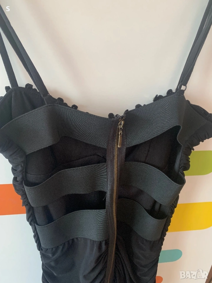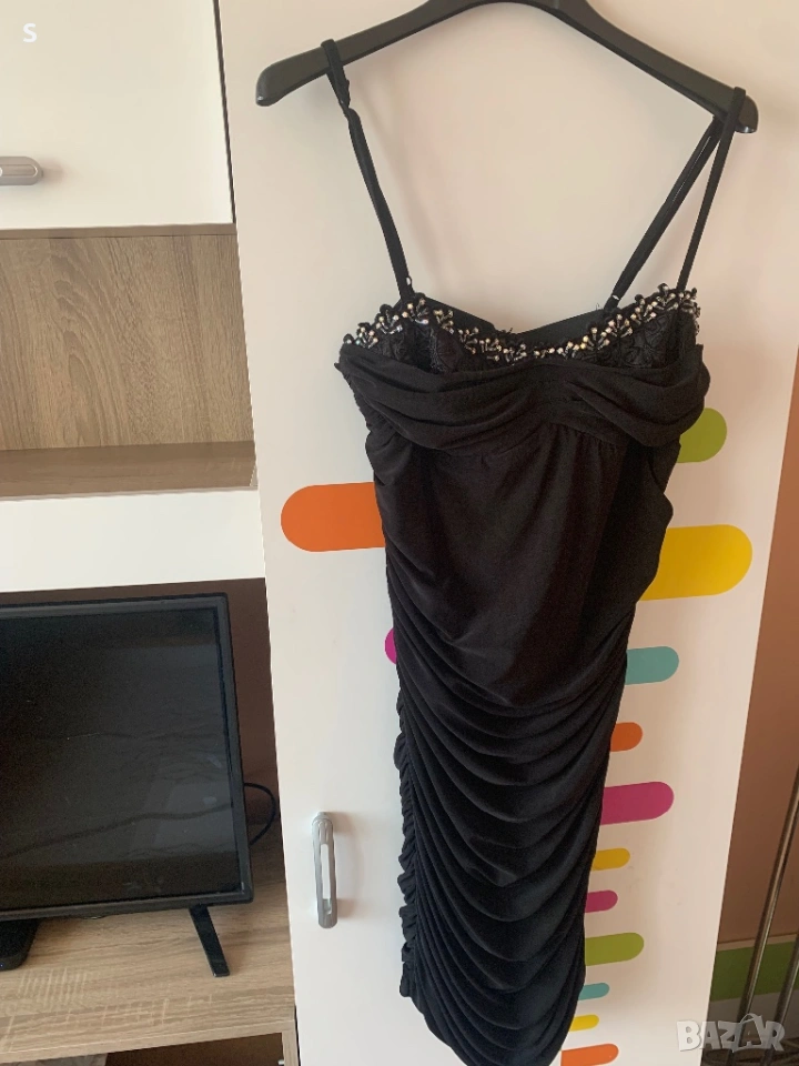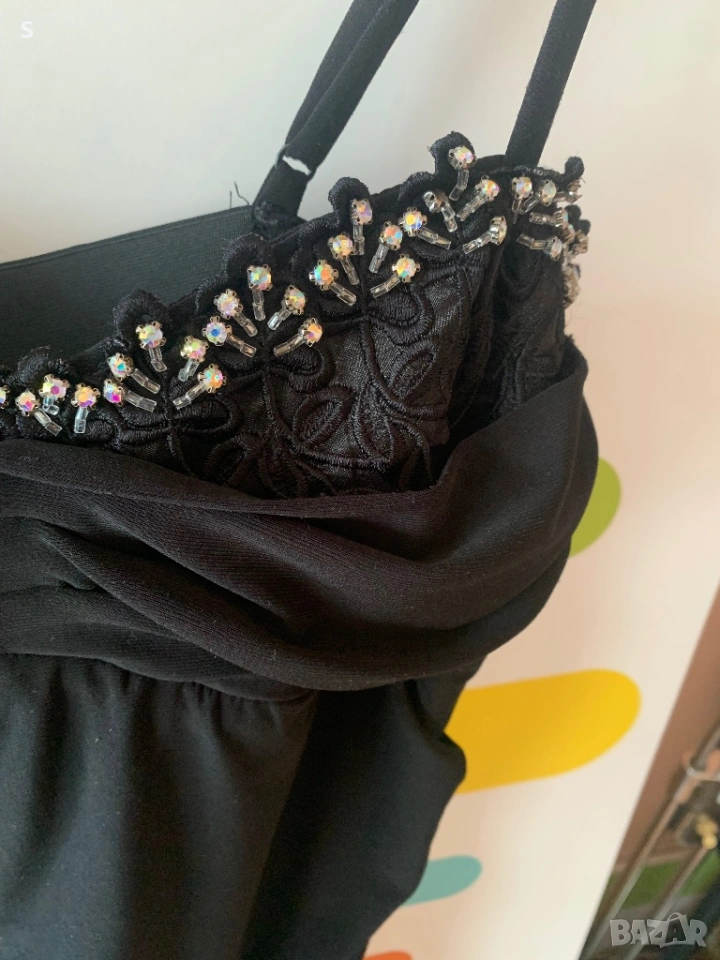 Малка черна Рокля.Много интересна …изрязана на гърба и с камъчета и имитация на дантелено бельо част от бюстието.Размер S.Разгледай и другите ми обяви🤗