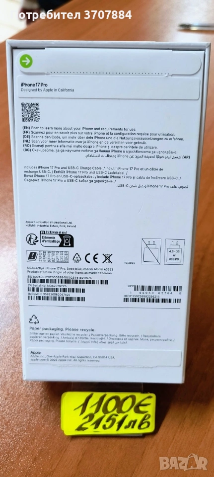 Apple iPhone 17 Pro 256GB Deep Blue , снимка 1 - Apple iPhone - 53948449 Apple iPhone 17 Pro 256GB Deep Blue , снимка 2 - Apple iPhone - 53948449 Apple iPhone 17 Pro 256GB Deep Blue , снимка 3 - Apple iPhone - 53948449 Apple iPhone 17 Pro 256GB Deep Blue , снимка 4 - Apple iPhone - 53948449 Apple iPhone 17 Pro 256GB Deep Blue , снимка 5 - Apple iPhone - 53948449 Apple iPhone 17 Pro 256GB Deep Blue , снимка 6 - Apple iPhone - 53948449 1/6