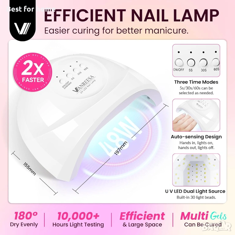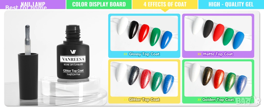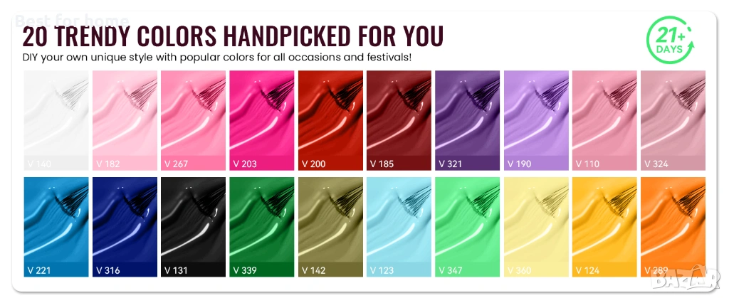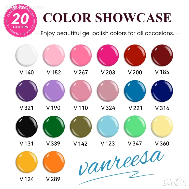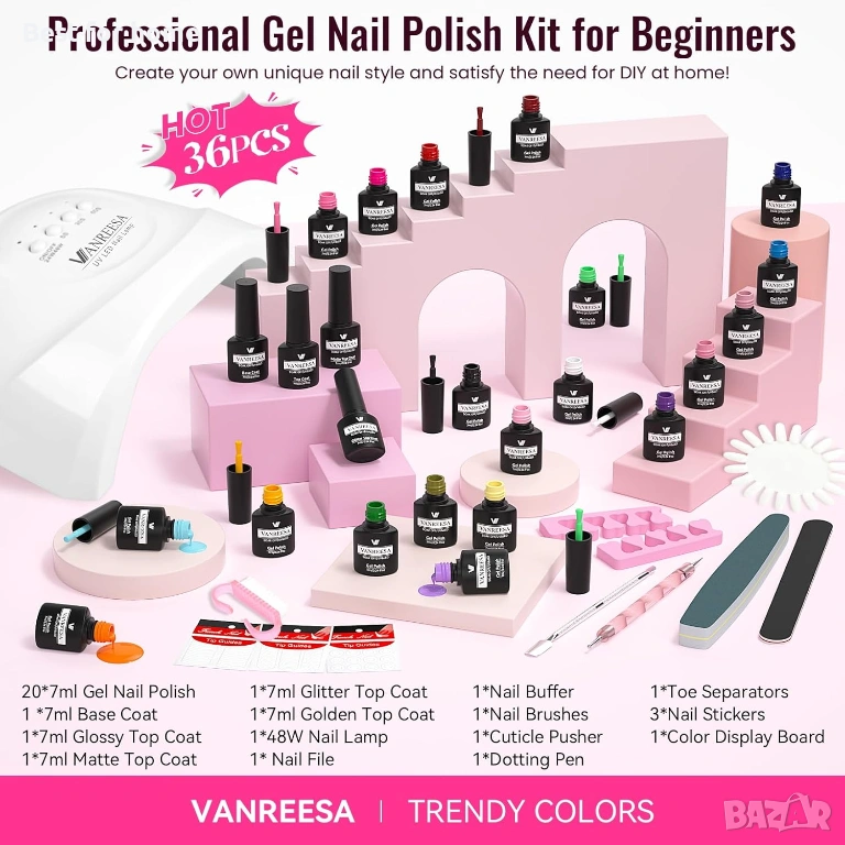 Комплект гел лакове за нокти VANREESA с UV светлина, 36 броя, 20 задължителни цвята