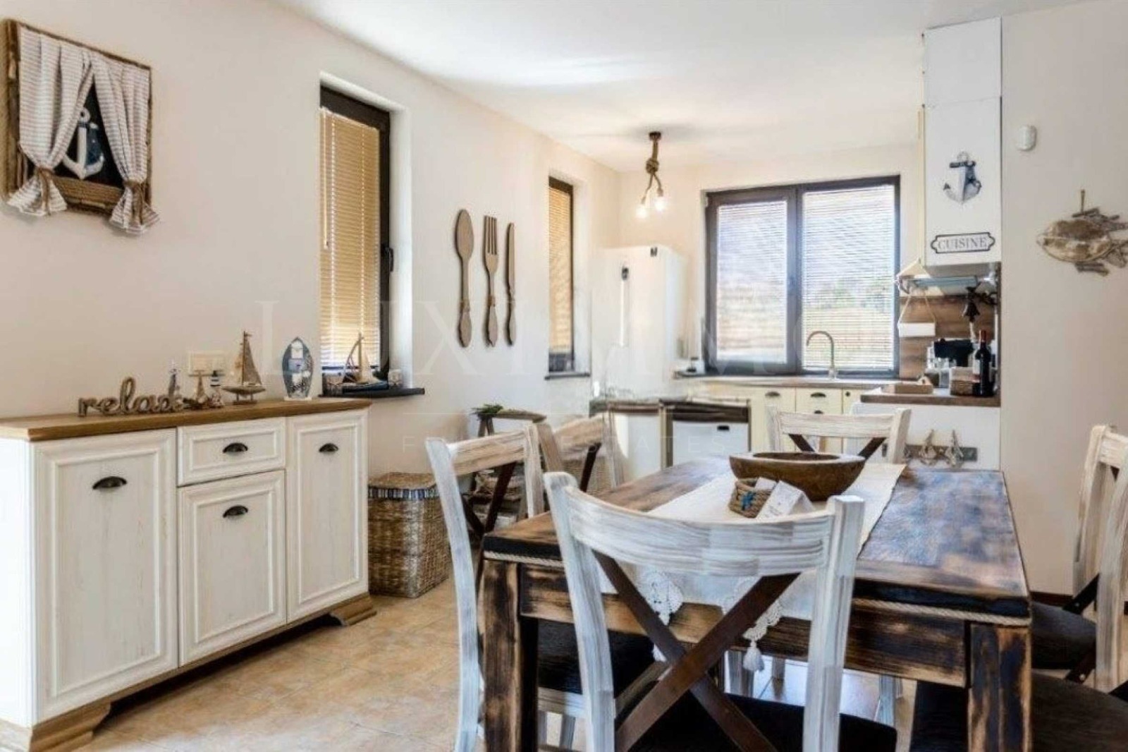 Къщата е модерно и елегантно обзаведена в средиземноморски стил, с много вкус и внимание към детайла. Оборудвана с най-висок клас електроуреди и с всичко необходимо за една незабравима почивка и релакс.