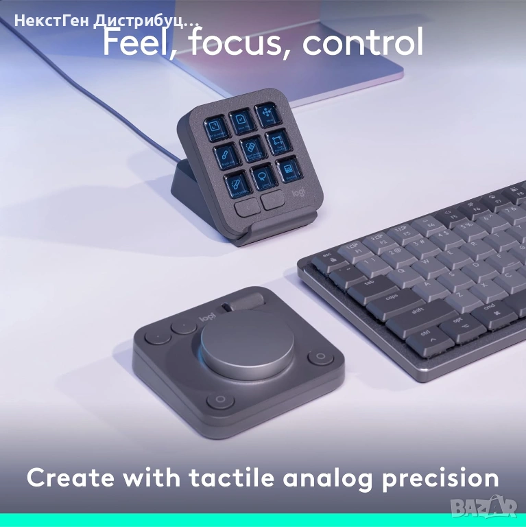 Logitech MX Creative Console е професионален контролер, предназначен за креативни приложения като дизайн, видео обработка и работа с мултимедия.