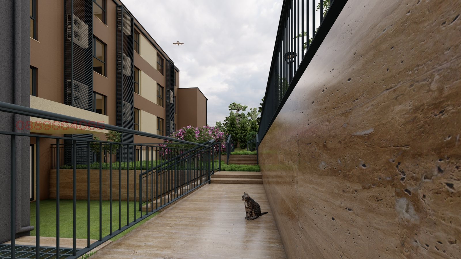 Сградата впечатлява с модерна архитектура, стилна фасада и луксозно изпълнени общи части.