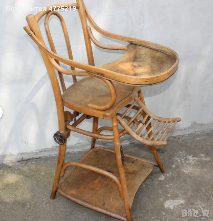 Уникално винтидж детско столче трансформер – комбинира стол и масичка в едно.