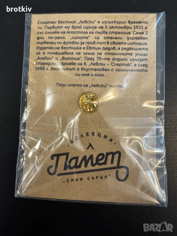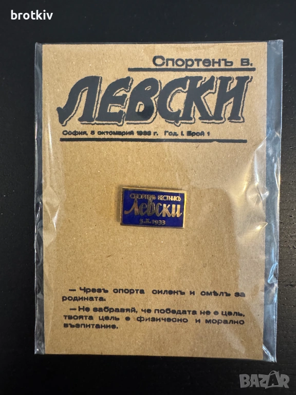 Продавам значка „Спортень вестникь Левски ”– синя. Купих я погрешка.