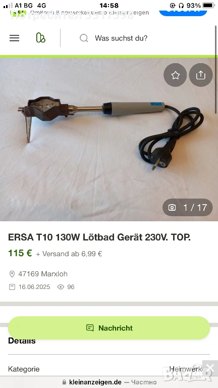 Поялник ERSA, снимка 1 - Други инструменти - 53949107 Поялник ERSA, снимка 2 - Други инструменти - 53949107 Поялник ERSA, снимка 3 - Други инструменти - 53949107 Поялник ERSA, снимка 4 - Други инструменти - 53949107 Поялник ERSA, снимка 5 - Други инструменти - 53949107 1/5