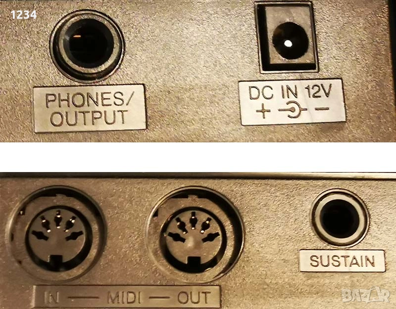 Миди вход и изход , вход за състейн педал, вход за слушалки.