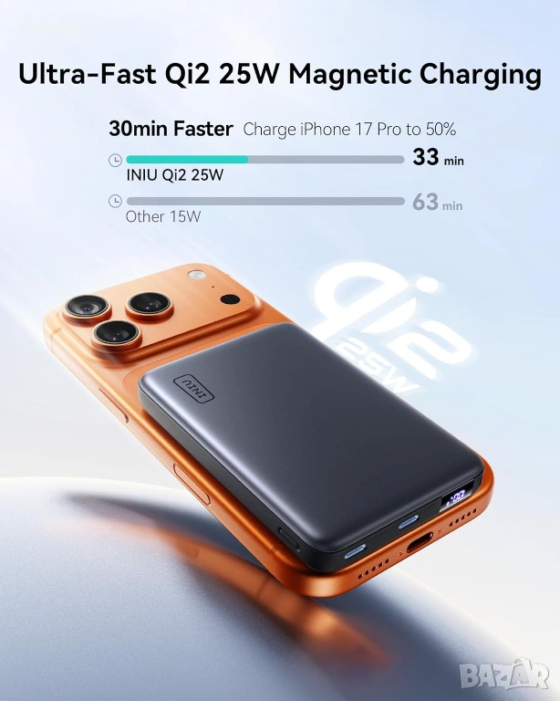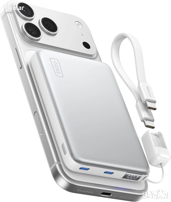 Външна батерия INIU за MagSafe 25W Qi2.2 10000mAh, 45W PD, само за iPhone, бяла