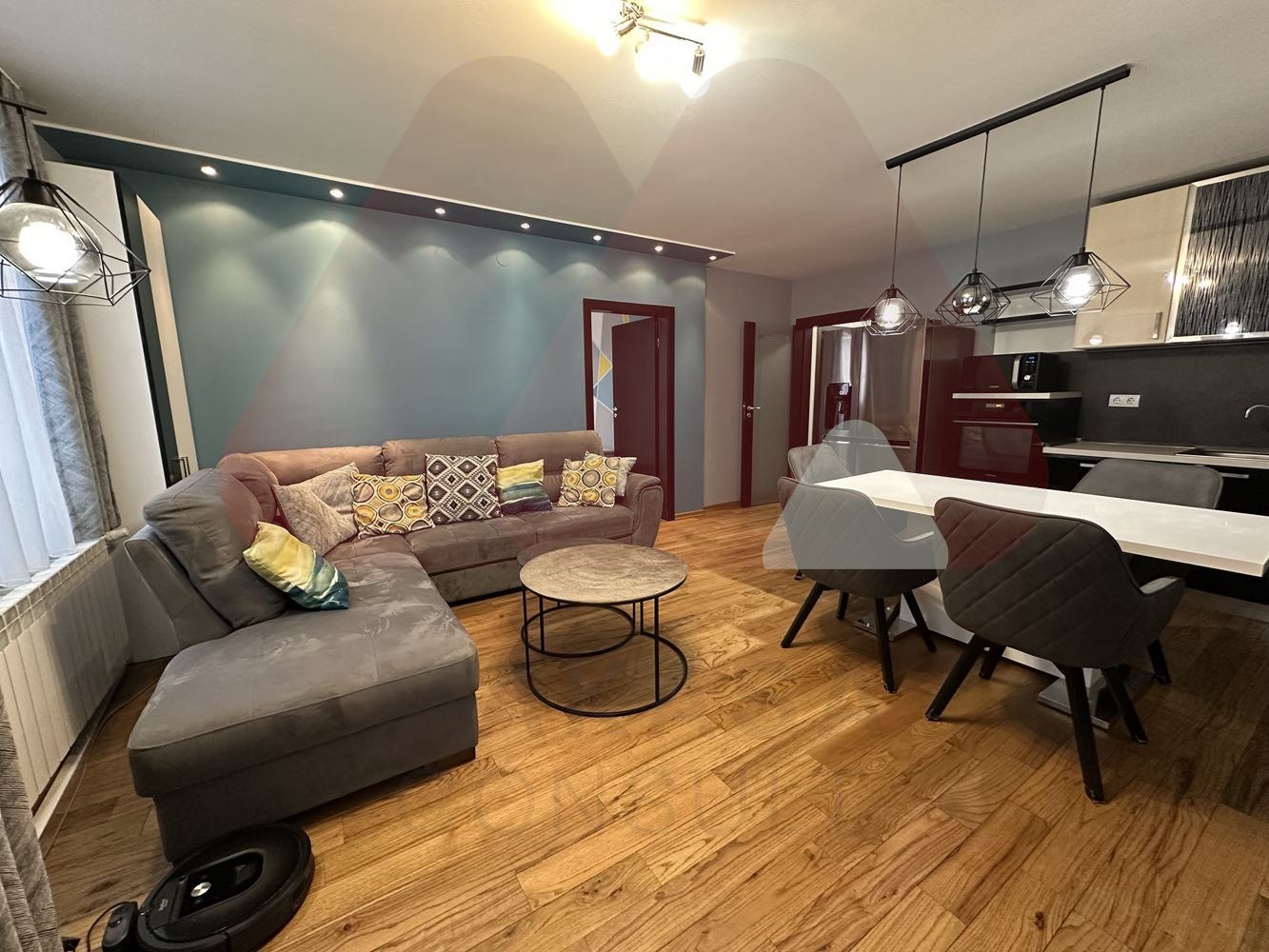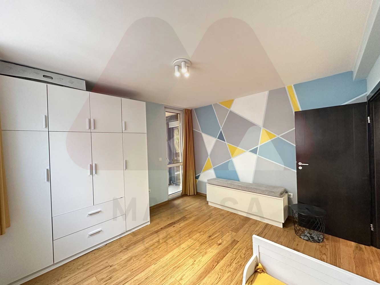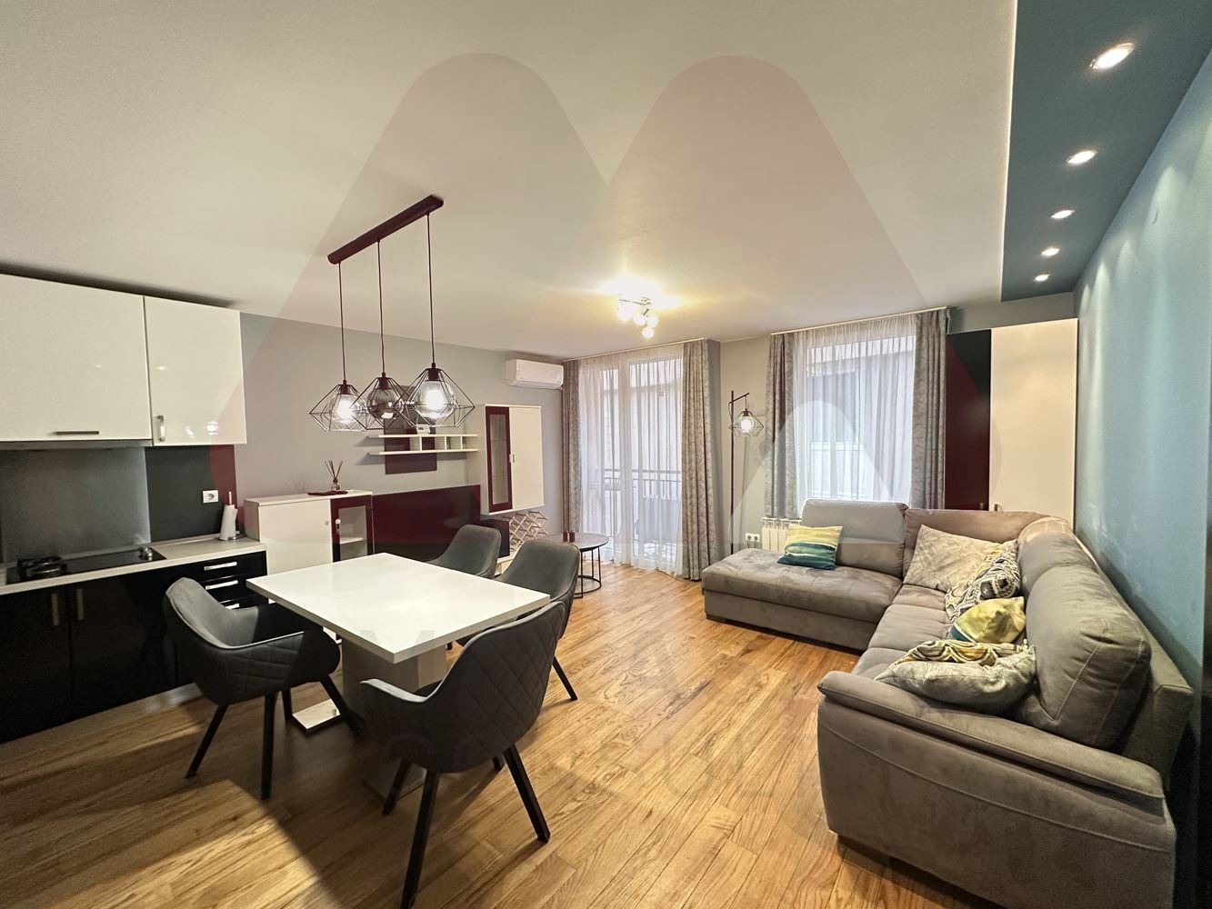 Макаса консулт предлага на Вашето внимание просторен напълно обзаведен тристаен апартамент в кв. Витоша, на границата с кв. Градина. Жилището се намира в малка кооперация с общо 12 апартамента, населена изцяло с млади семейства с АКТ 16 от 2014г. Жилището се намира на 3-ти етаж от общо 4, в сградата няма асансьор. Апартаментът е с изцяло южно изложени, което го прави изключително топъл през зимните месеци с ниски консумативни разходи през отоплителния период. Отоплението е със самостоятелно газово котле, а за летния период е поставен инверторен климатик Daikin в дневната. Имотът е с чиста площ от 85 кв.м, които се разгръщат в следното разпределение:, входно антре, с портманто, шкаф за обувки и сушилня, просторна дневна с кухненски бокс и трапезария със излаз на тераса, преходна детска стая/кабинет, с излаз на тераса, втора непреходна спалня с излаз на тераса, баня с тоалетна. В сутерена на сградата има мазе, които е включено в наемната цена. Жилището е напълно обзаведено, като разполага със голяма съдомиялна, пералня, сушилня, микровълнова фурна, вградена фурна с керамични котлони, абсорбатор и други. Към имота може да се наемане открито паркомясто, за 75 евро на месец. В имота се допускат малки домашни любимци срещу допълнителен депозит. Имота се отдава дългосрочно.