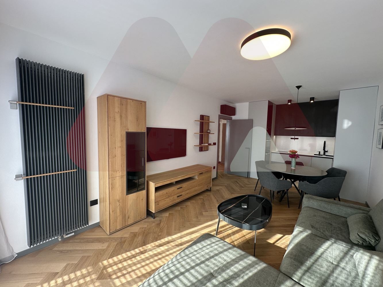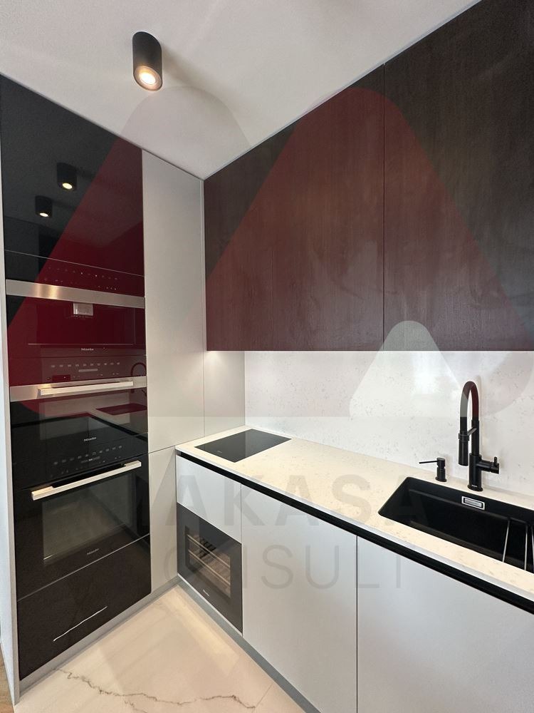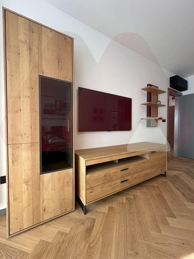 Жилището е обзаведено по дизайнерски проект с най-високо качество материали, мека и корпусна мебел на световно известни марки, някои от които се монтирани на премиум жилищни проекти и печелили световни награди за дизайн и устойчивост. Имотът се предлага с пълна набор от бяла и черна техника, от които уреди в кухнята са последен модел на световно известна марка Miele. Кухнята разполага с вградена фурна, микровълнова фурна, вградена кафемашина, охладител за вино, вградени индукционни котлони, голяма миялна машина и хладилник с фризер. Всички механизми са BLUM, а кухненските шкафове са изпълнение от МДФ и естествен фурнир. Пералня и сушилня са монтирани в мокро помещение в коридора на апартамента, също на Miele. И в двете стаи са монтирани инверторни климатици Daikin за отопление и охлаждане, които може да се управляват и с Wi-fi. Банята е напълно оборудвана с качествен гранитогрес и фаянс както и цялостна санитаря на Villeroy & Boch. Спалнята е напълно обзаведена, с масивен четирикрилен гардероб, спалня 160/220 см., с подсветка и нощно осветление, нощни шкафчета с отделение за бижута и часовници.