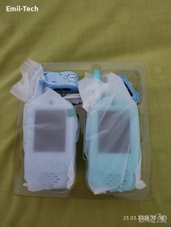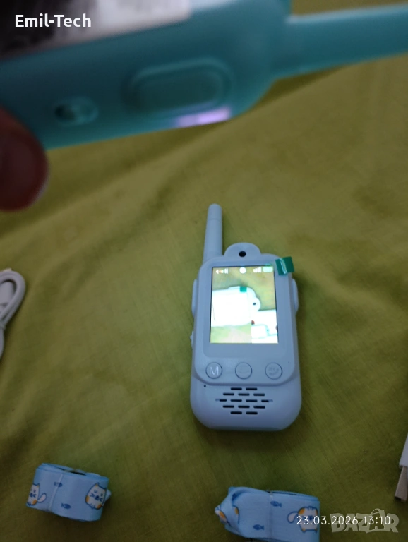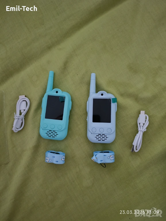 Продавам нов комплект детски видео уоки токи – 2 броя, неизползвани, в цветове синьо и зелено.