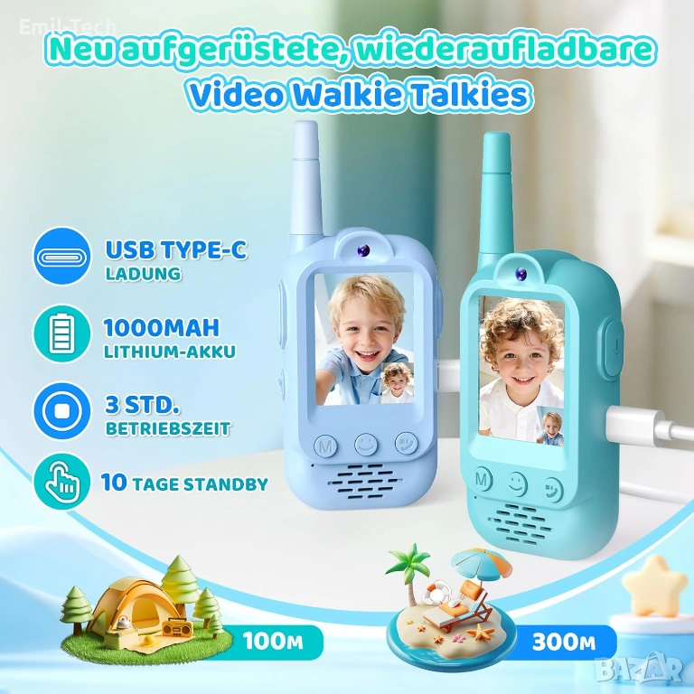 Нови детски видео уоки токи 2 бр. с камера, презареждаеми → Обява 53949354