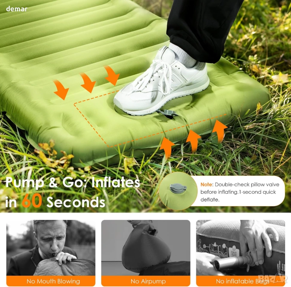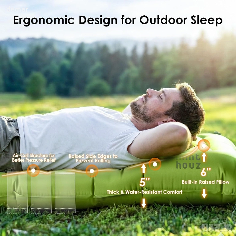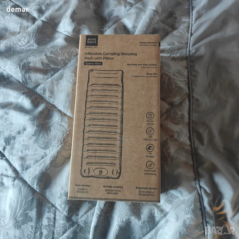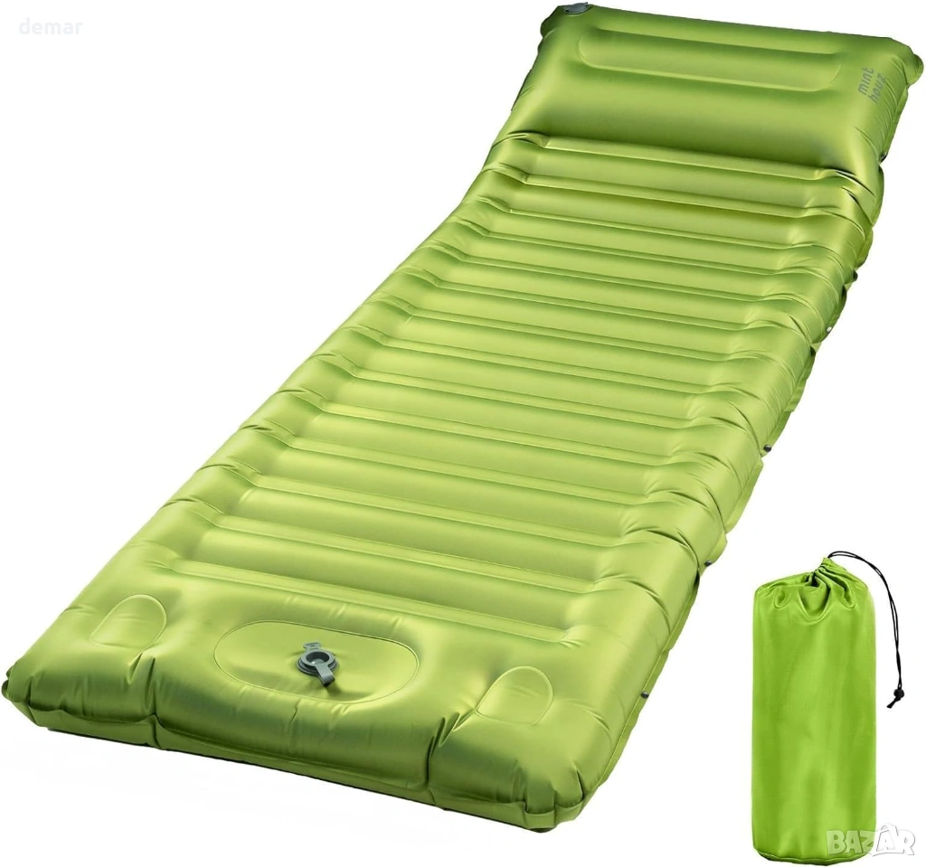 Къмпинг постелка Minthouz, ултралек надуваем къмпинг матрак с възглавница и вградена помпа