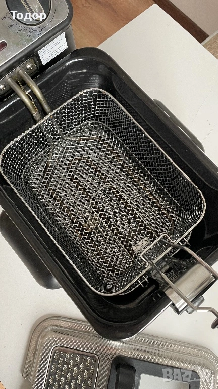 Този фритюрник е оборудван с капак с прозорче за наблюдение на приготвянето на храната и метален филтър за мазнини. Освен това има кошница с позиция за капково изтичане, която позволява на олиото да изтече обратно в съда след пържене. Задайте времето и будилник ще звънне, когато картофките ви са готови! Използвайте регулируемия термостат , за да изберете температурата от 150° до 190°. Този фритюрник се почиства много лесно. Корпусът, контейнерът, капакът, кошницата за пържене и филтърната мрежа могат да се мият в съдомиялна машина.