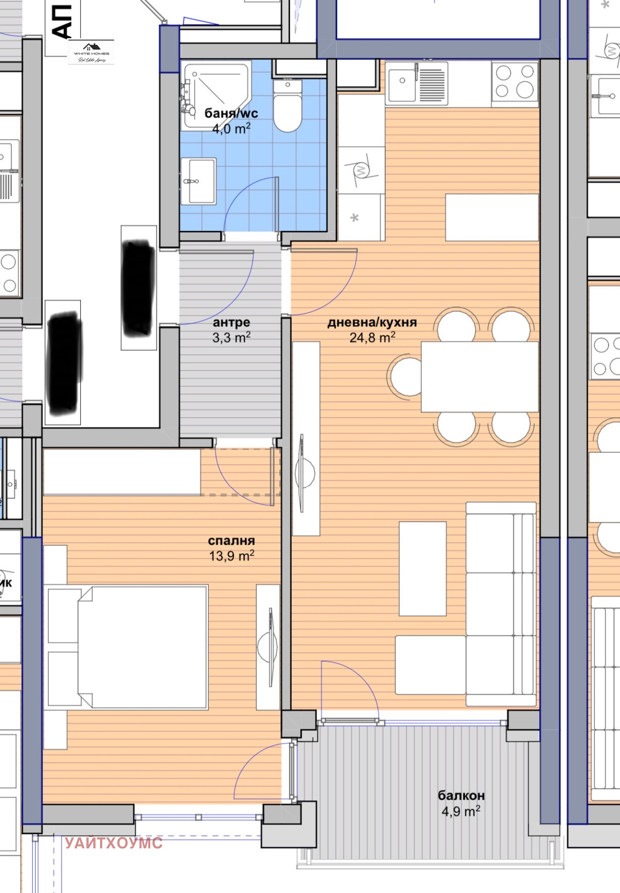 Ние от White homes ви предлагаме за продажба двустаен апартамент в нова сграда с отлична локация в близост до НСА. Имотът се намира в модерен жилищен комплекс, изпълнен с висококачествени материали и съобразен с всички съвременни изисквания за комфорт и енергийна ефективност.