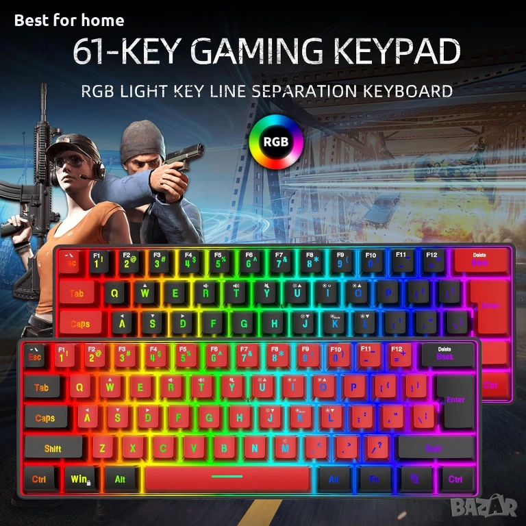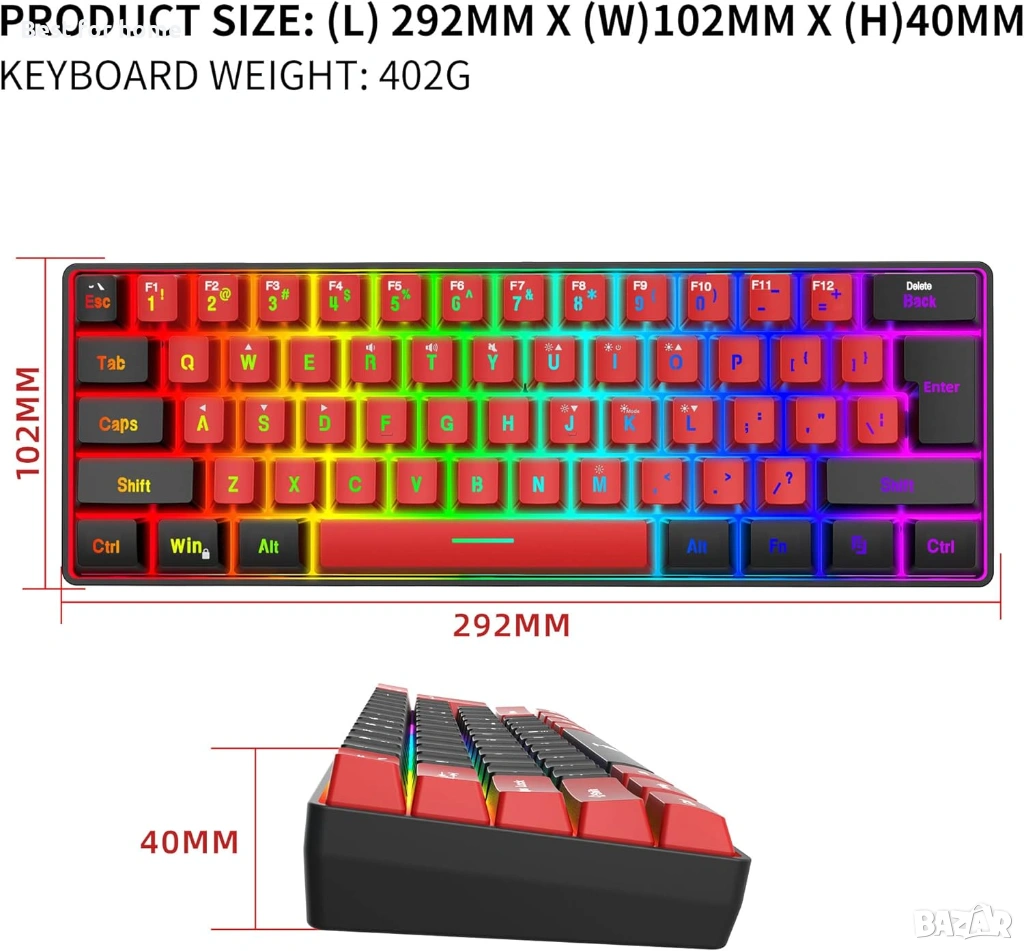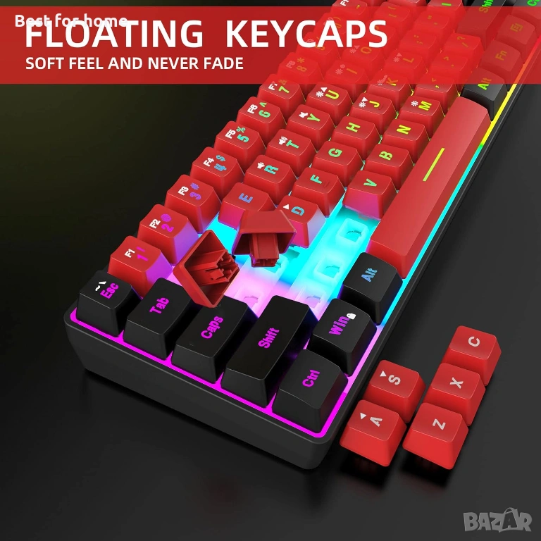 Мини 60% клавиатура — Тази 60% геймърска клавиатура е с малък размер и е подходяща за всякакви среди, включително бизнес пътувания, игри, офис, домашна употреба. Без цифров блок, по-практична за геймъри и машинописи, осигурява повече място на бюрото.