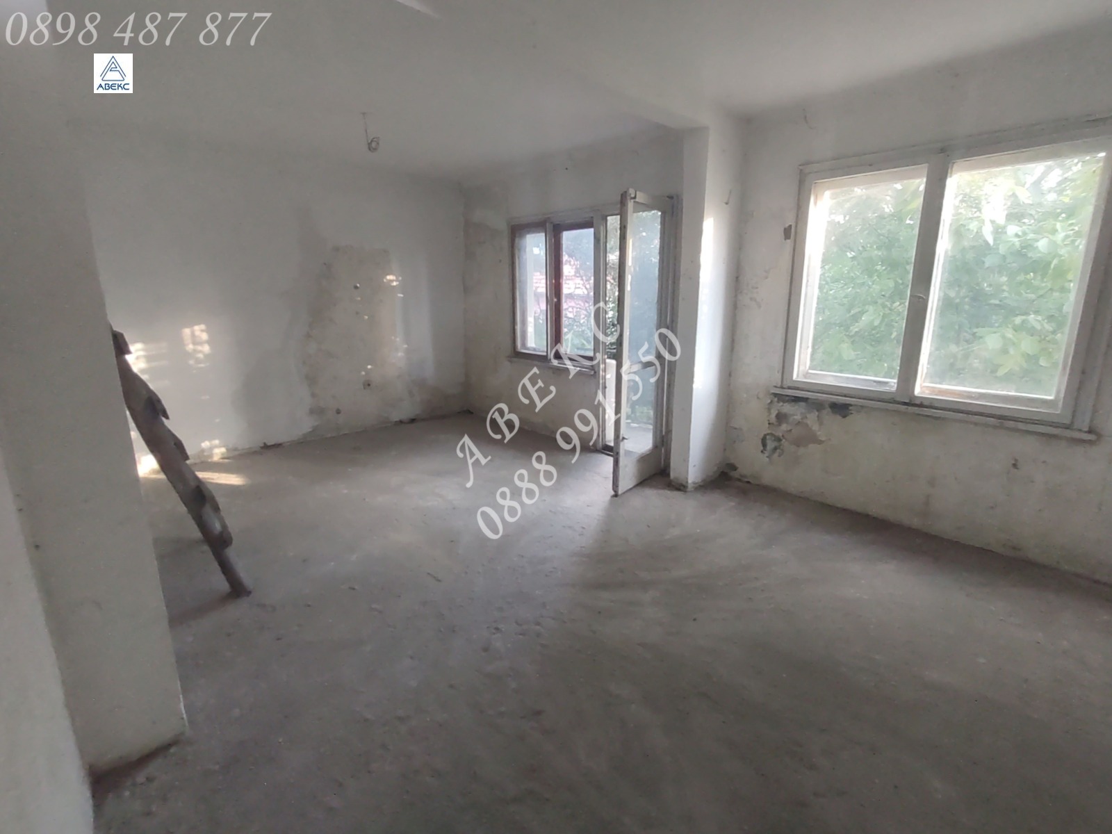 Парцел в регулация в с.Волуяк м.'Гарата' с голямо лице. Имота е с правилна форма и равнинен релеф. Попада в устройствена зона Жм с показатели: Плътност 40%, Кинт 1,3, мин. озеленяване 40% и Къто корниз 10 м. В имота има законна еднофамилна къща стоманобетонна конструкция с тухлени стени. РЗП 107 кв.м. Къщата се състои от два етажа, таван и пристройка. Разпределение: 1-ви етаж: антре, дневна, кухня, пристройка с баня с тоалетна, склад. 2-ри етаж: антре, спалня, втора спалня, която може да се радели на две и тоалетна. Таванския етаж представлява еднообемно помещение с надзид над 1м. и с прозорци и тераса на юг. Къщата е изчистена и се нуждае от съвремен ремонт. Действащи партиди за Ток и Вода.