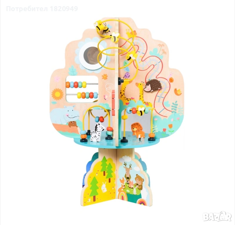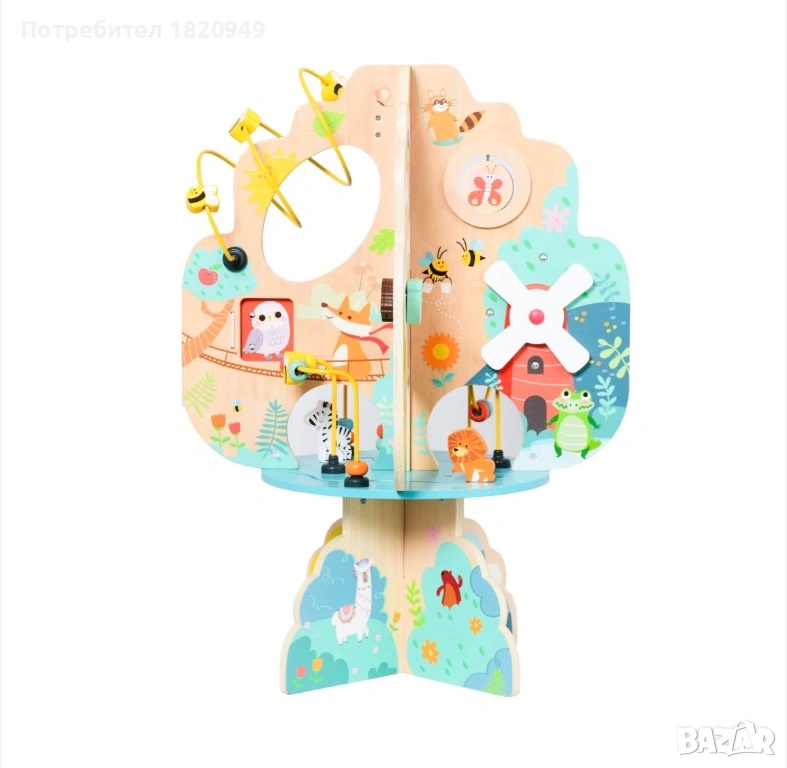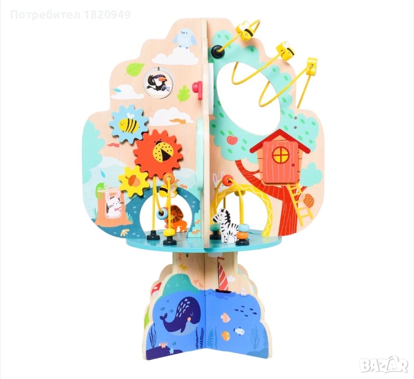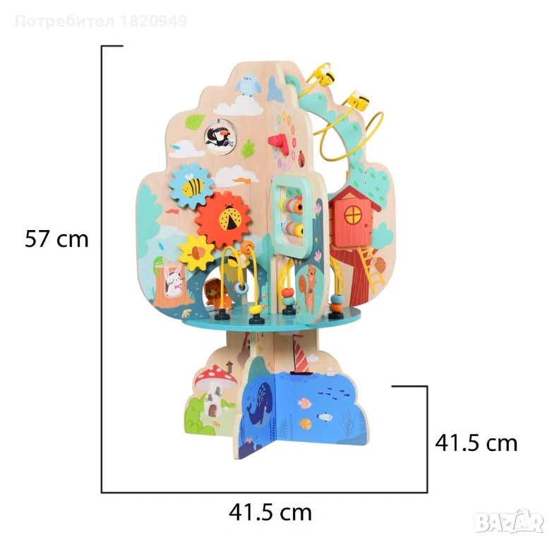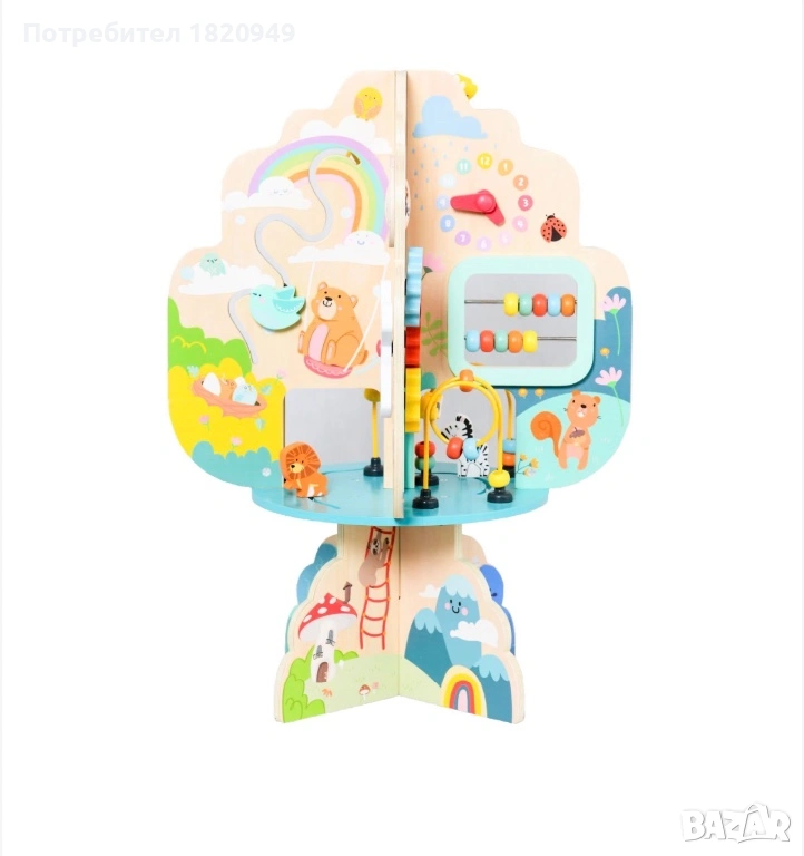 Тази дървена играчка с активности е не само красиво допълнение към детската стая, но и инструмент за развиване на когнитивните умения на детето.