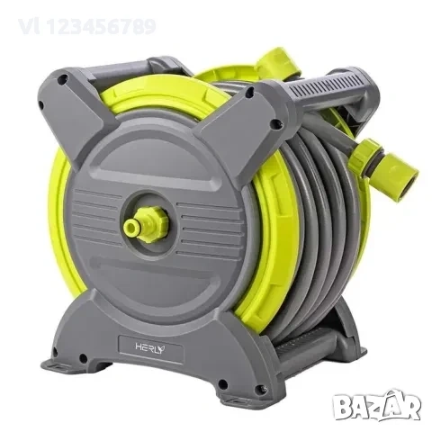 Макара за маркуч HERLY, Бързо навиване, включен маркуч 15м и конектори, размер 1/2, сиво зелен