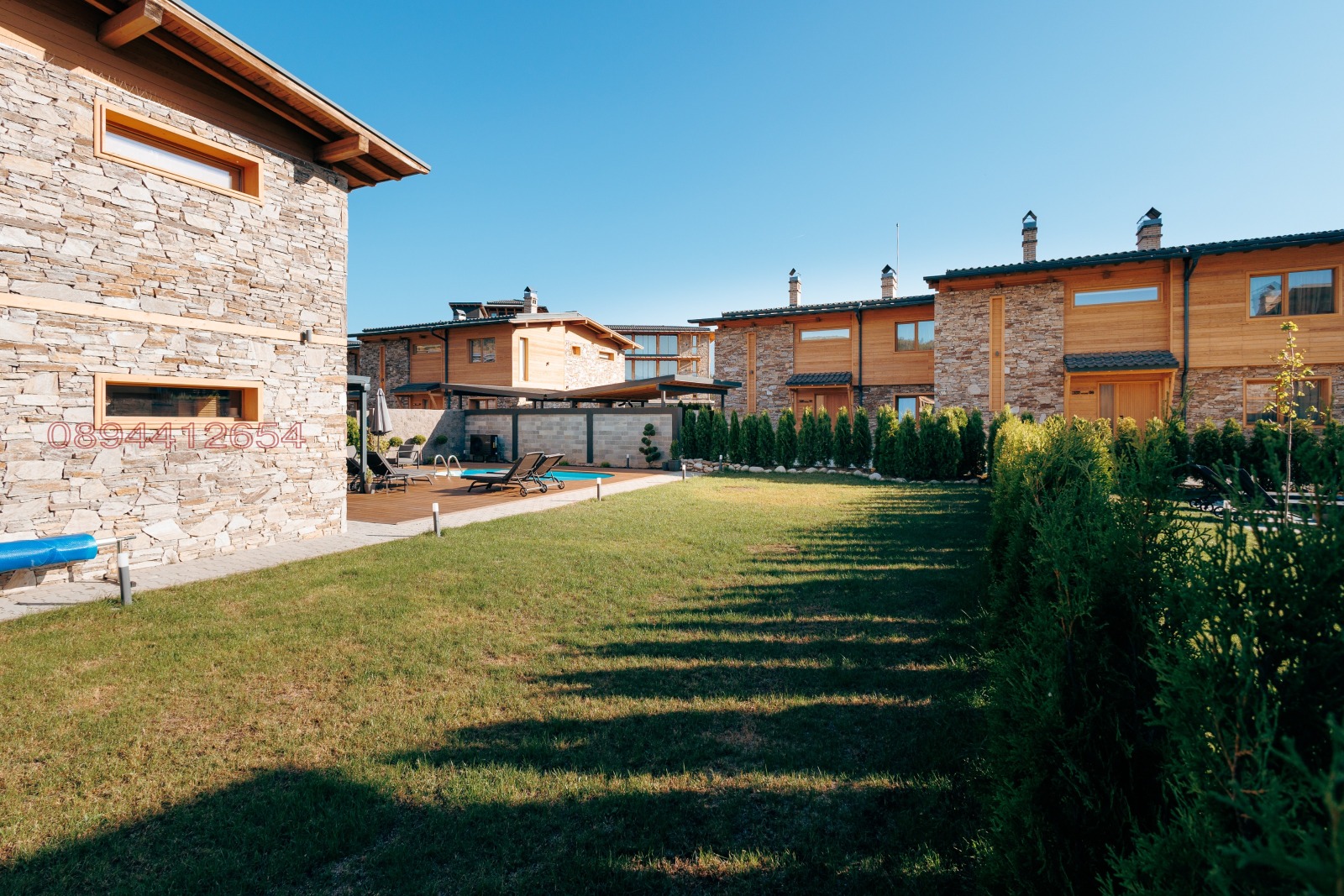 Луксозна двуетажна къща с минерален басейн, озеленен двор и изцяло обзаведен модерен интериор идеална както за целогодишно живеене, така и за ваканционен имот.