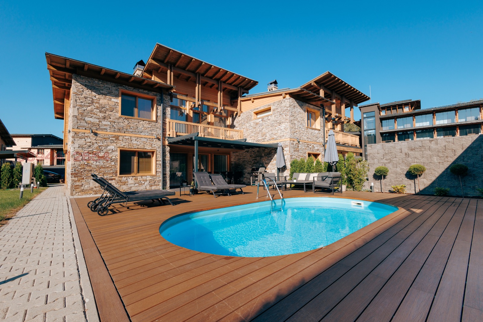 Луксозна двуетажна къща с минерален басейн само на 5 км от Банско и 158 км от София