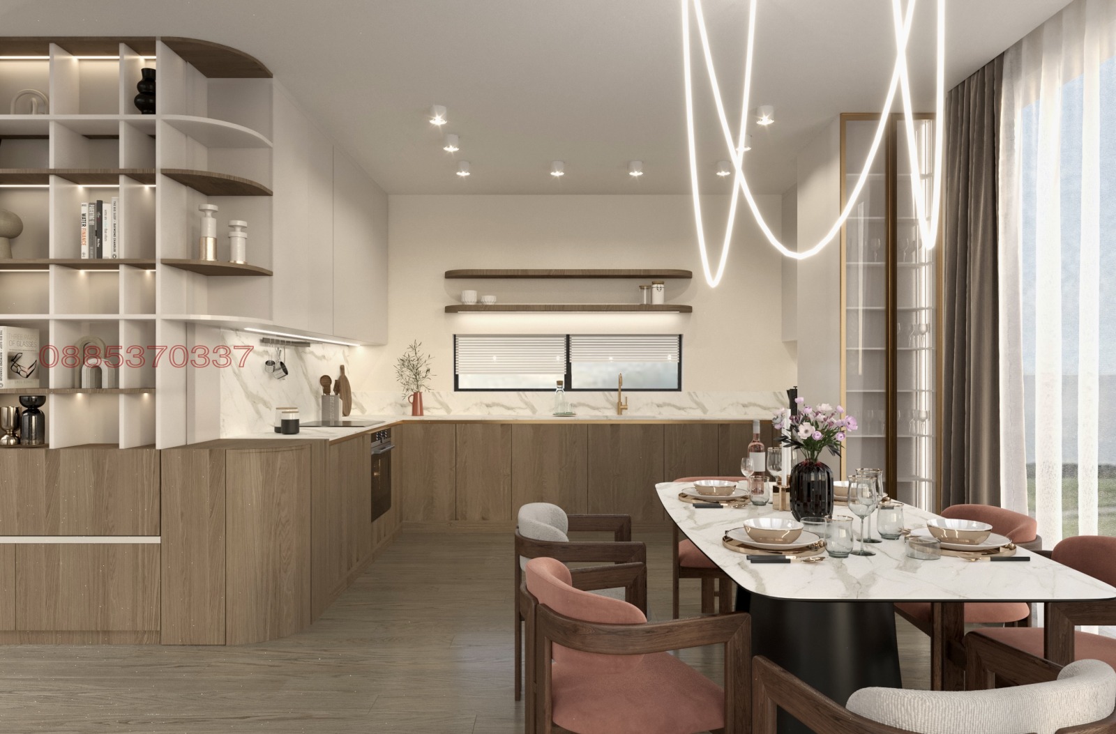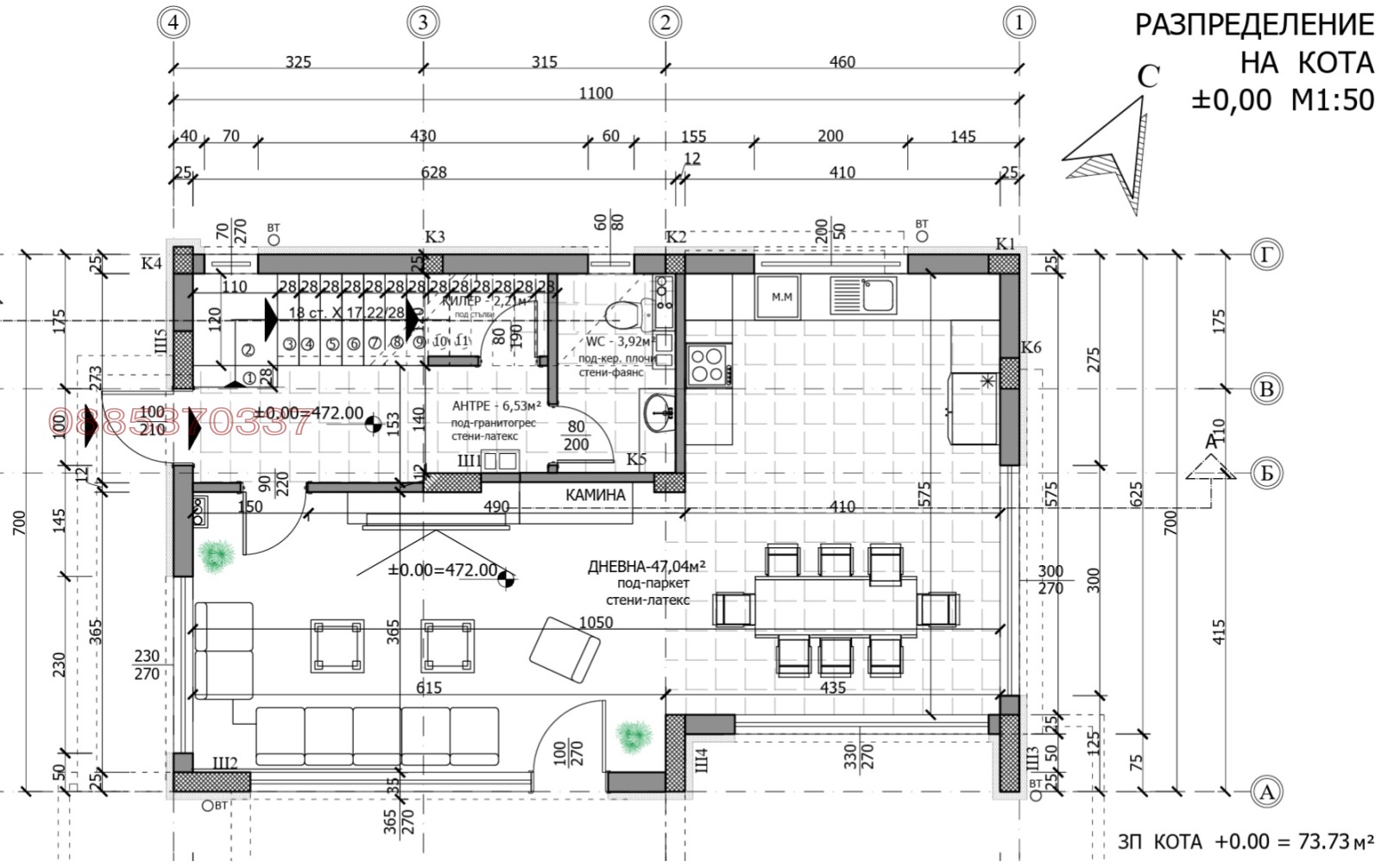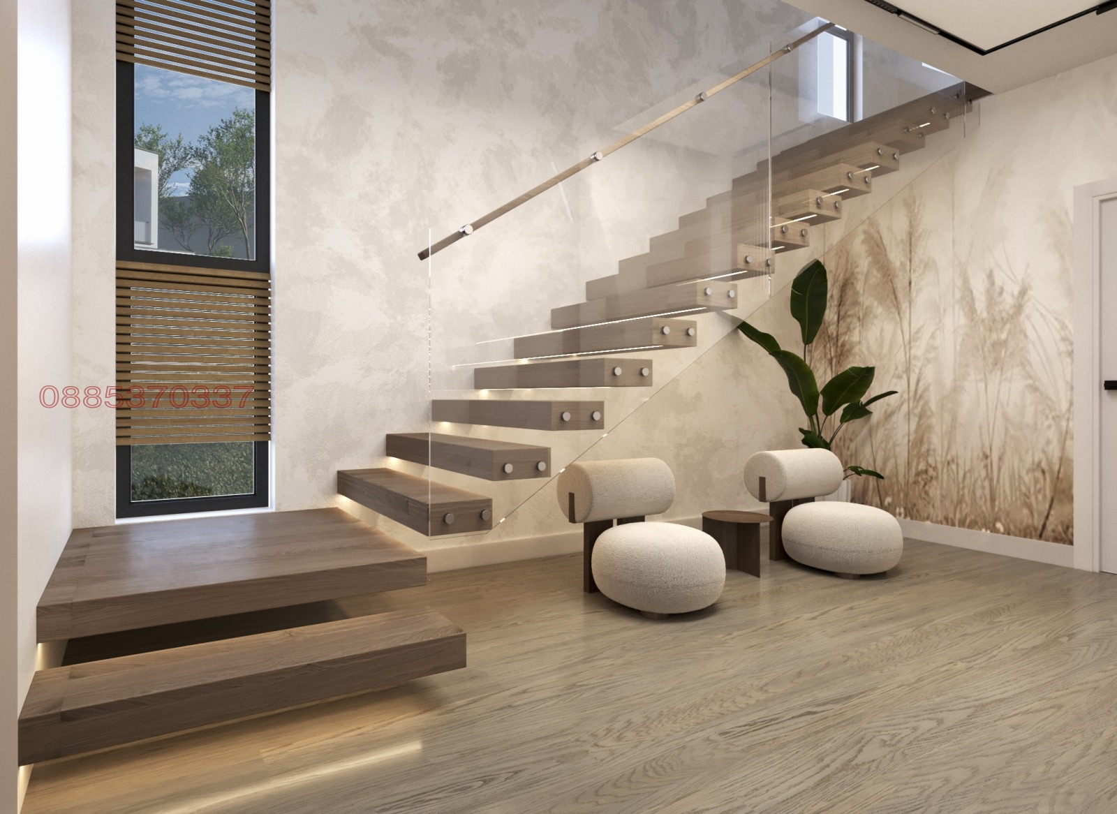 На първо ниво е разположено входно антре, баня с тоалетна и стълбище и дневна. Големите френски прозорци осигуряват изобилие от естествена светлина и създават пряка връзка между вътрешното пространство и двора. Второто ниво на къщата предлага три комфортни спални, две бани с тоалетни и красив балкон с приятна гледка към околността. За всяка къща може да се изготви подробен и персонализиран интериорен проект според вашите нужни.