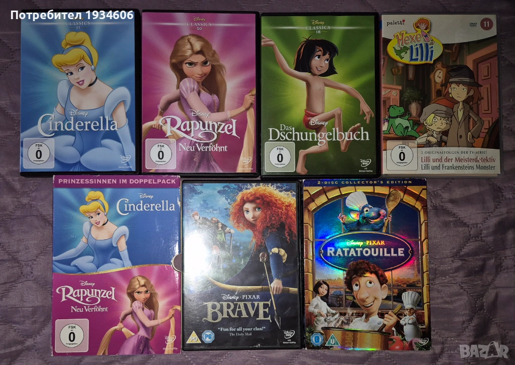 Продавам дискове с различни Disney анимационни филмчета от личната си колекция. Дисковете са запазени и нямат повреди - има немски и английски издания без български език/субтитри.