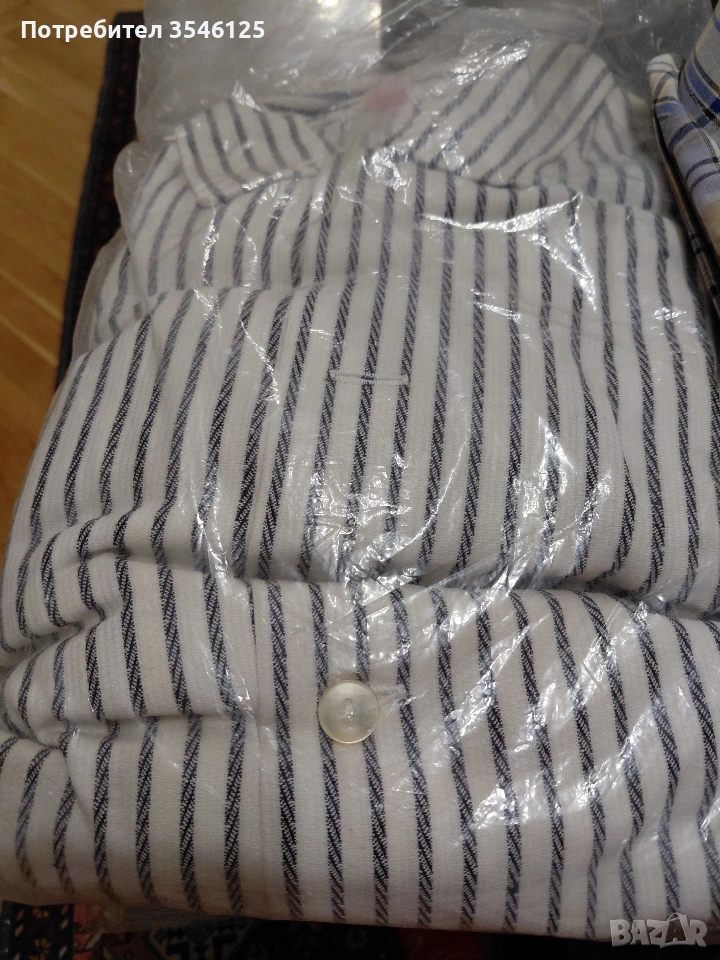 Продавам нова бяла пижама и 2 ризи с дълъг ръкав. Подходящи за уютни вечери у дома и за почивка през уикенда.Размирите са: