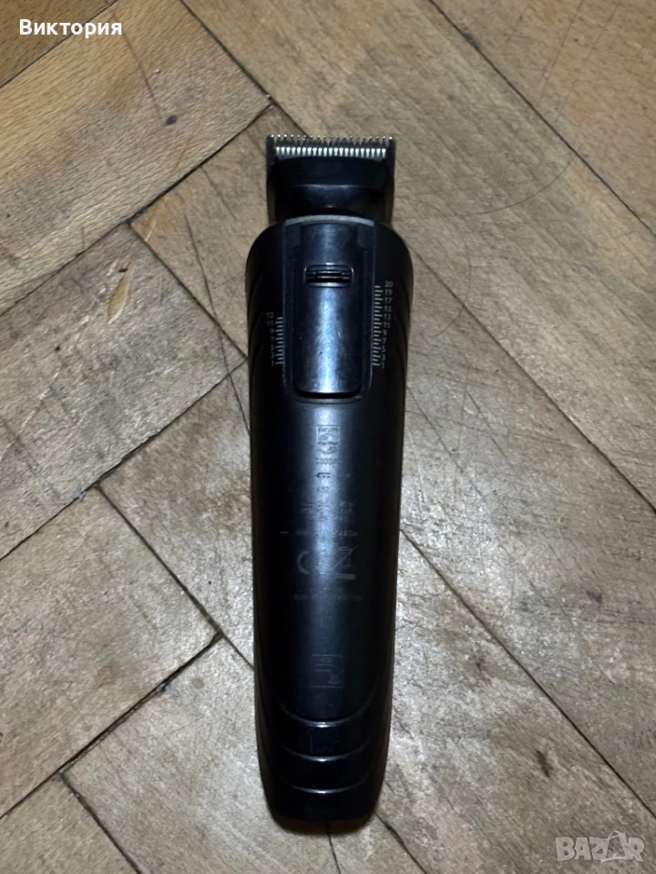 Комплект: Продава се тялото на машинката (основен тример) заедно с оригиналното зарядно устройство (адаптер). Без допълнителни приставки и кутия.