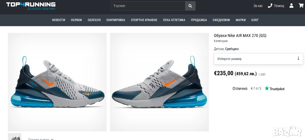 Пълно име: Nike Air Max 270 (GS – Grade School/за по-големи деца).