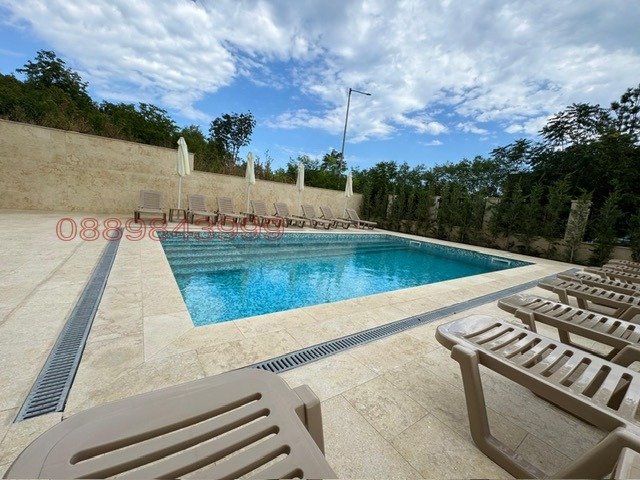 Едностаен 51 кв.м., обзаведен, западно изложение, с прекрасна гледка към морето и к-с Слънчев ден в нова луксозна сграда, находяща се на адрес: ул. Боян Бъчваров'. Етаж 4 от 7, с външен басейн и парко място. Контролиран достъп в кооперацията с код, затворен двор. Асансьор. Състои се от просторна стая, баня с WC, коридор и тераса. Обзавеждането включва кухня с монтирани уреди, миялна и пералня, двойно легло, диван, маси, ТВ. Отоплението е подово, което се захранва от термо помпа, но има и конвектори за отопление и охлаждане /централна климатизация на сградата/. Ново луксозно жилище, не е живяно в него. На 3 км. от входа на к-с Св. Константин и Елена . Без домашни любимци. Два депозита.