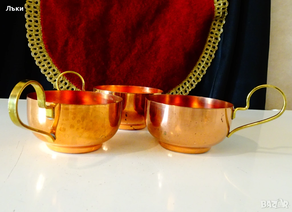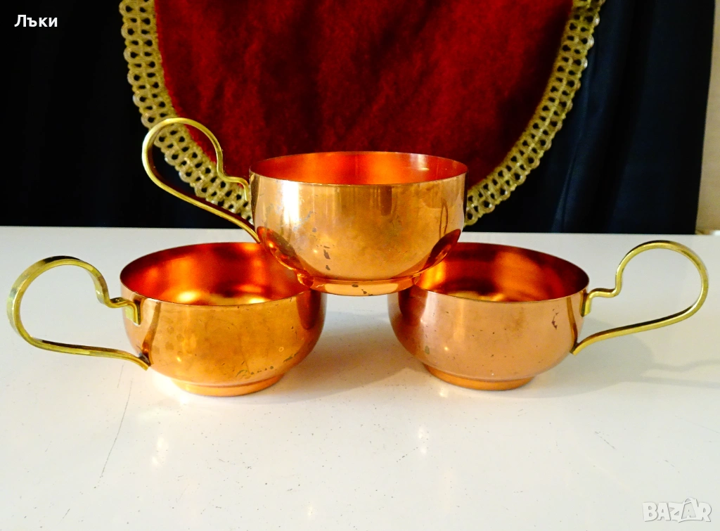 Стари медни чаши,ръчно изработени от масивна чиста червена